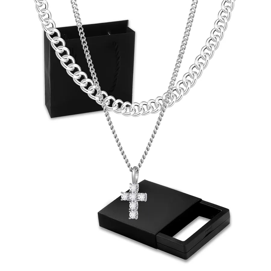 Casual Hip-Hop Streetwear Cross 304 Stainless Steel Copper Necklace 1 Set - Silver / Nn027