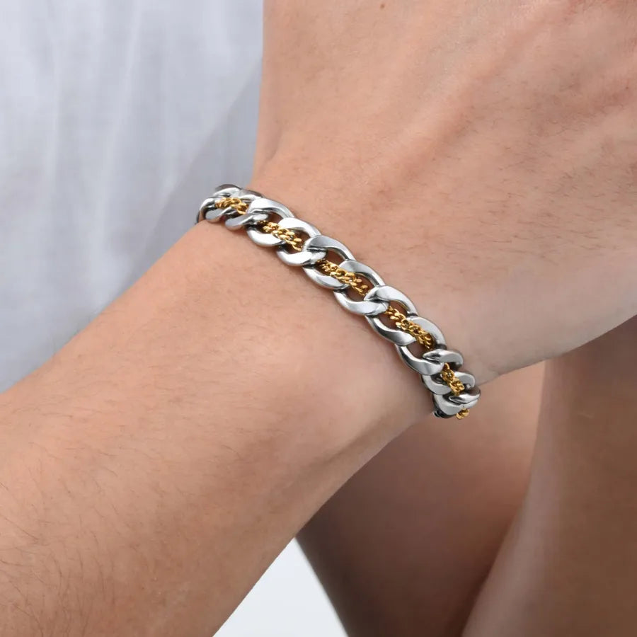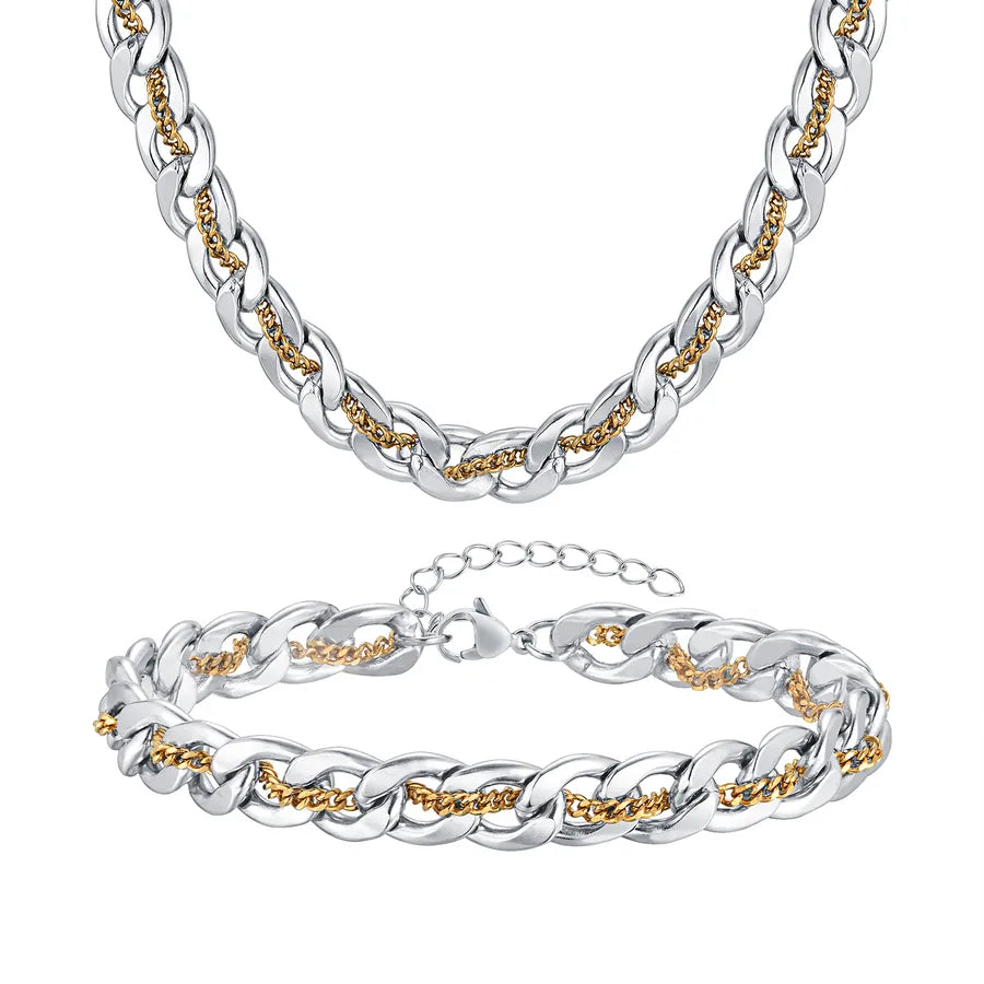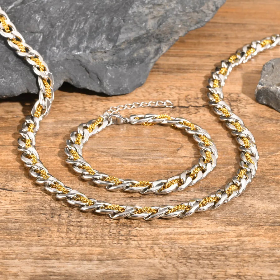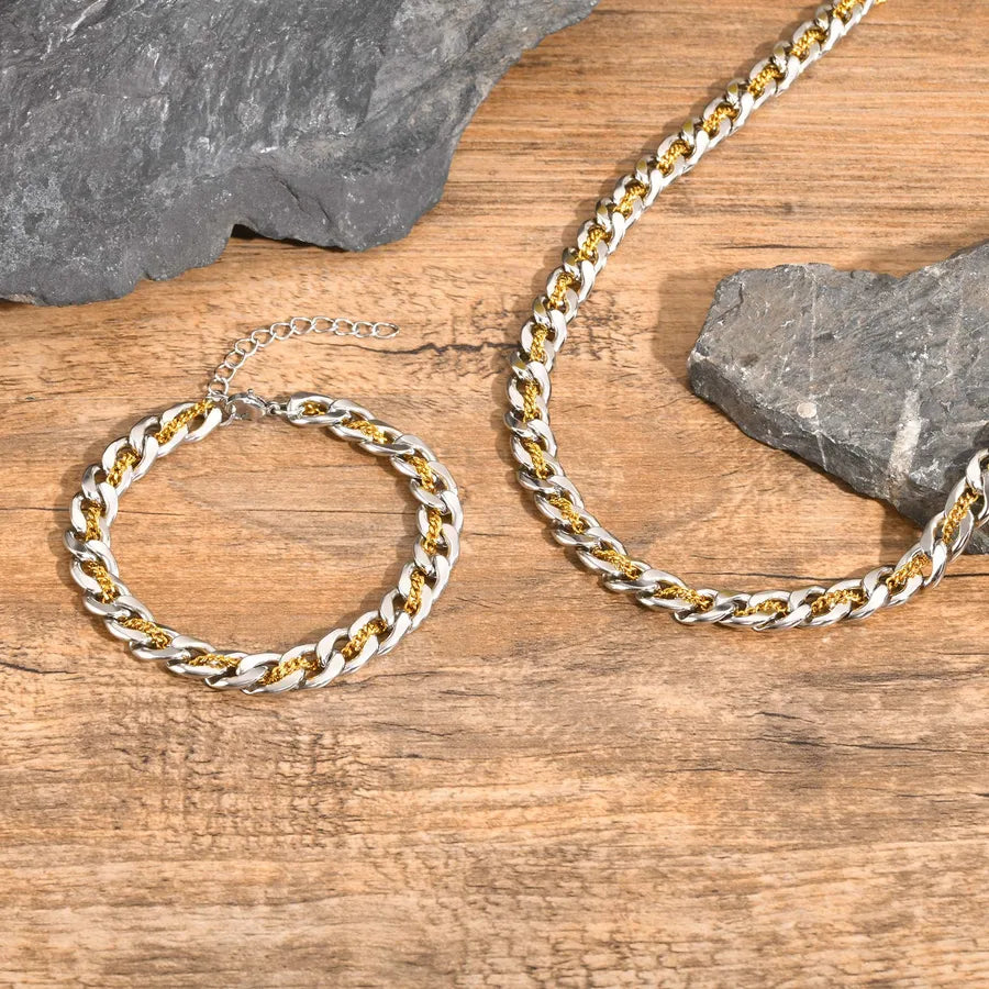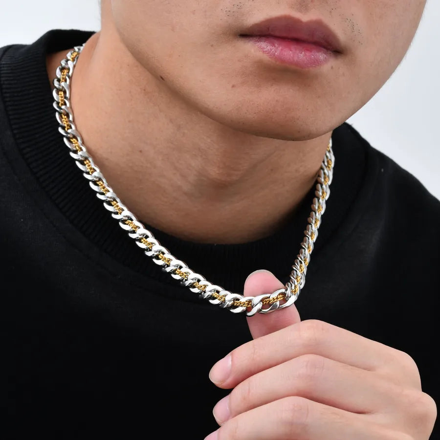 Commute Solid Color 201 Stainless Steel 18K Gold Plated Men's Bracelets Necklace Men Chain Necklaces - Necklace