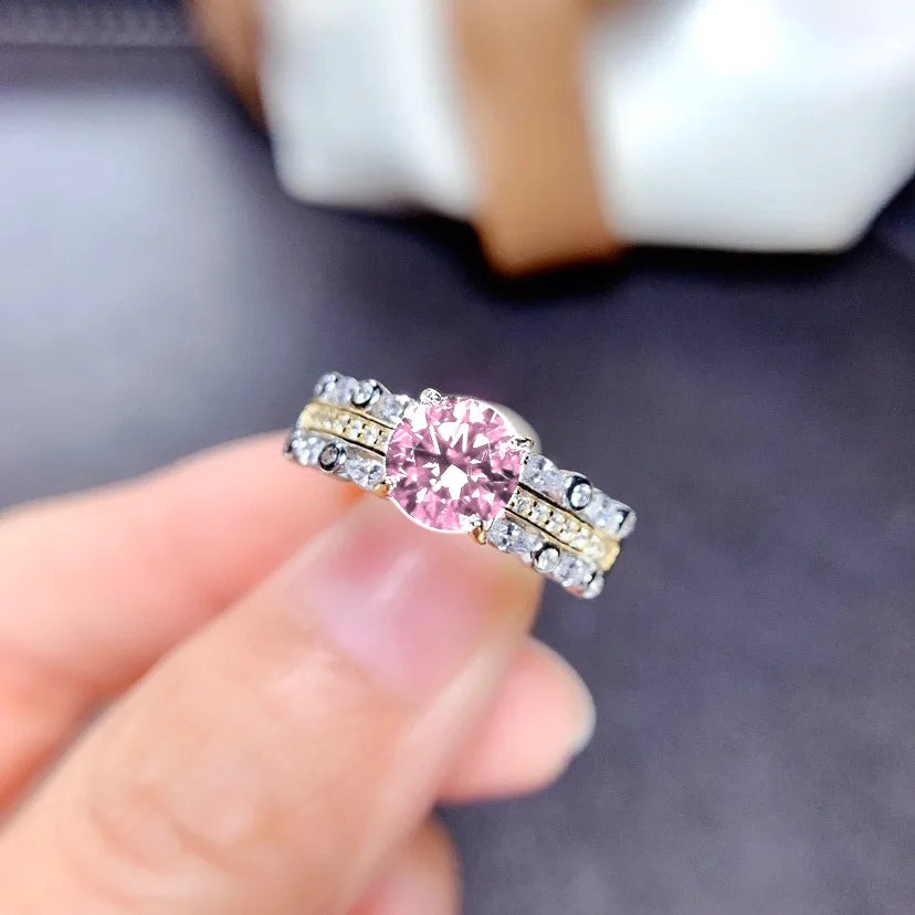 Copper Diamond Geometric Artificial Gemstones Crystal Rings - Adjustable Opening / Pink [1 Karat] 6.5mm