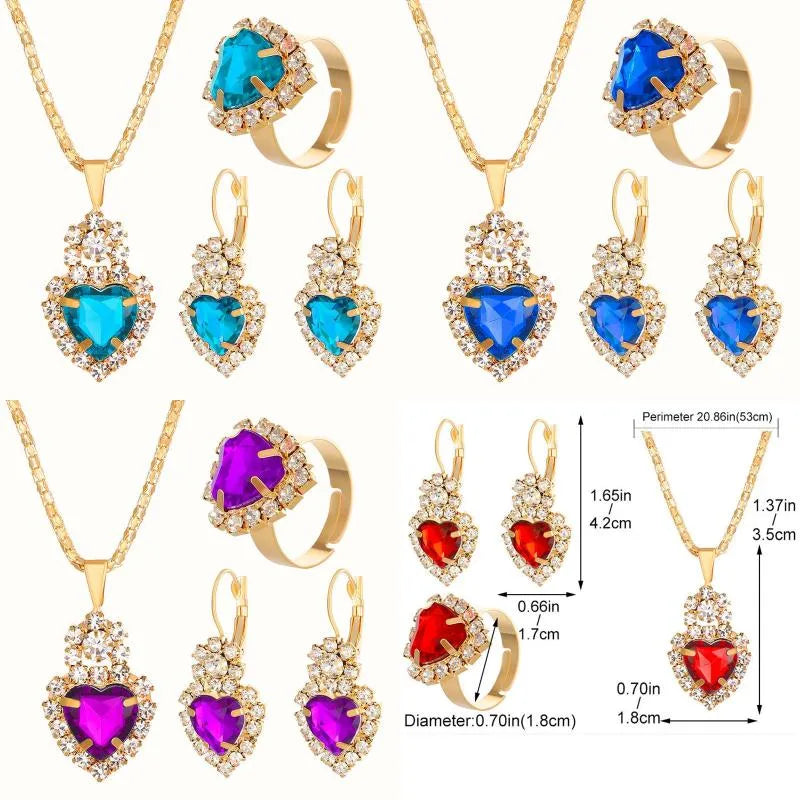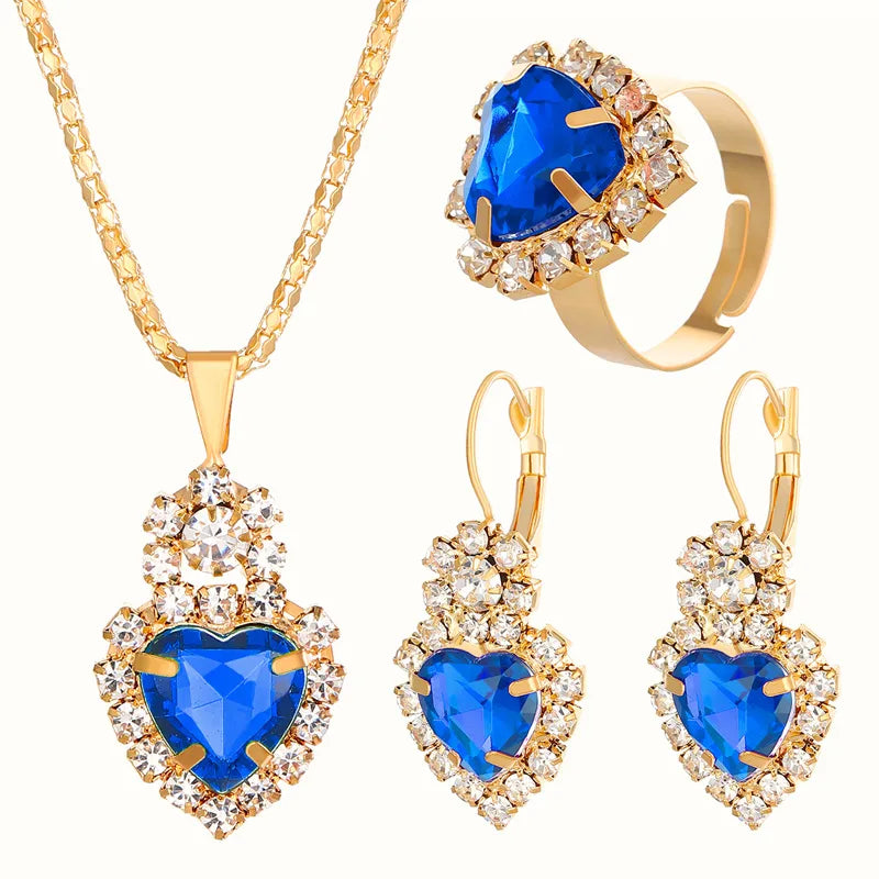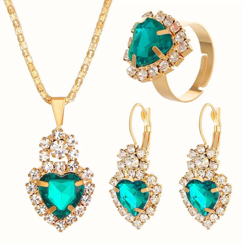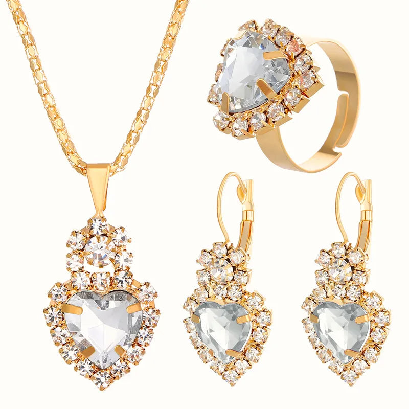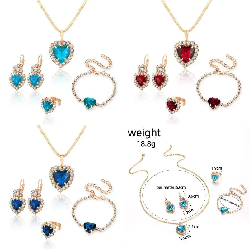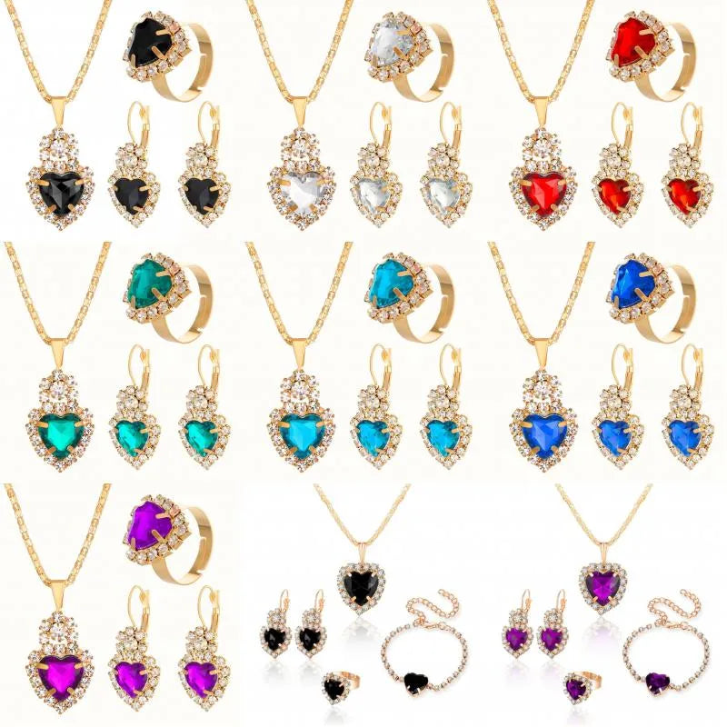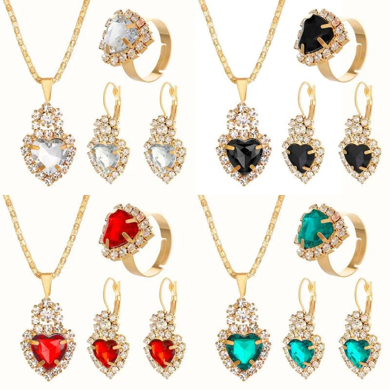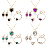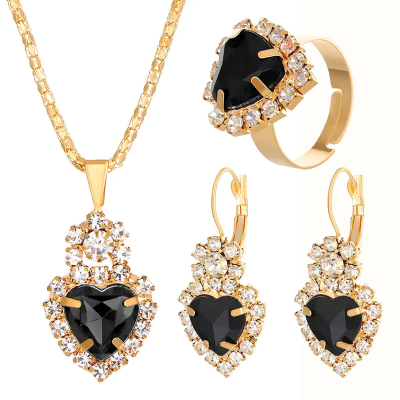 elegant lady shiny heart shape alloy plating inlay rhinestones 18k gold plated women's bracelets earrings necklace - 01 Black (4-Piece Set) / 1 Set
