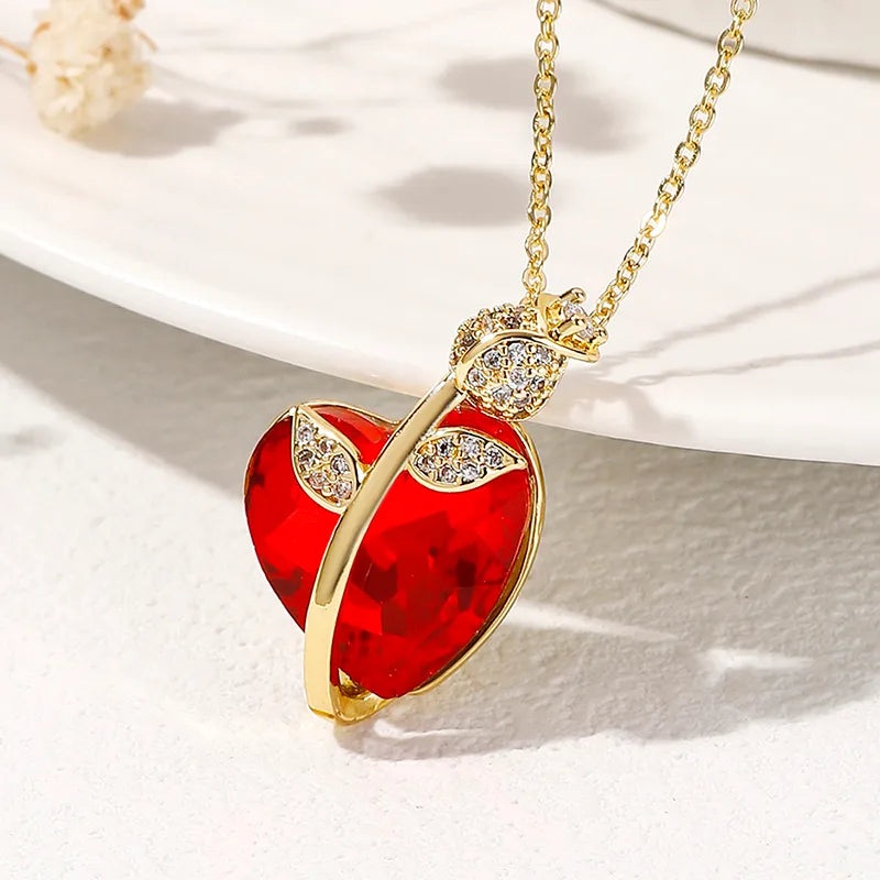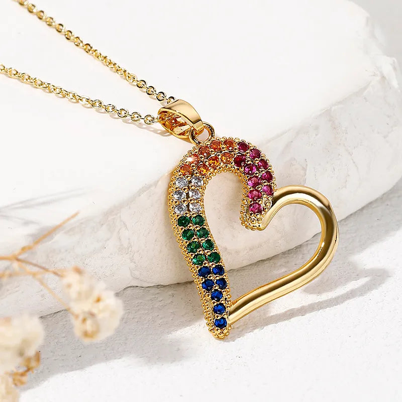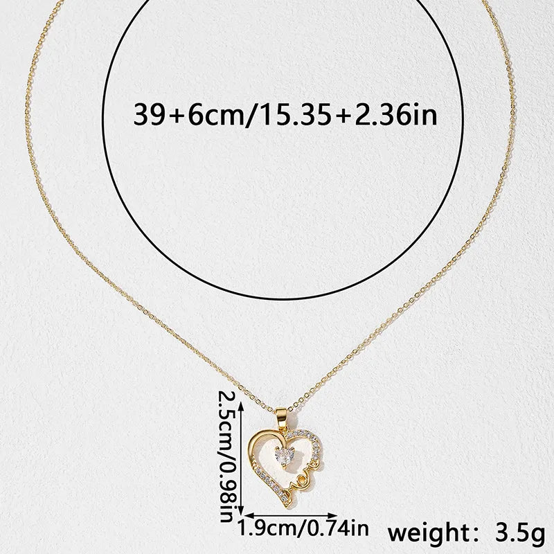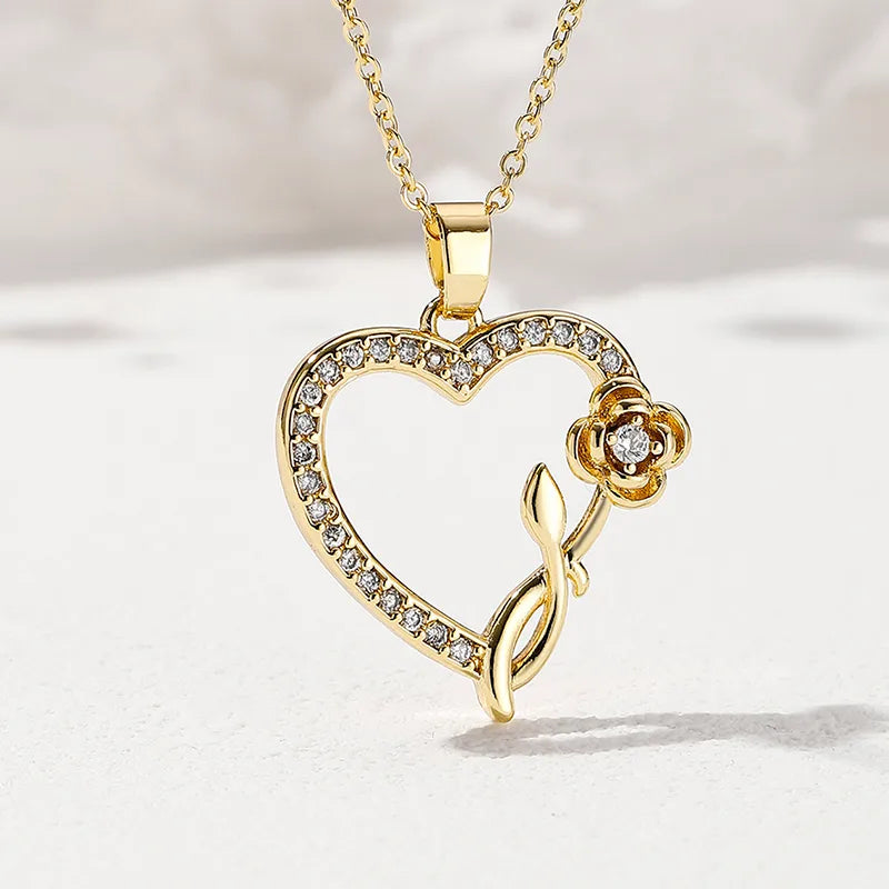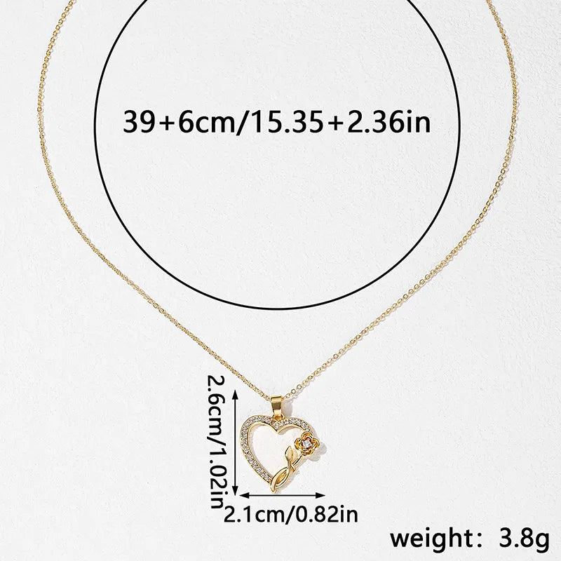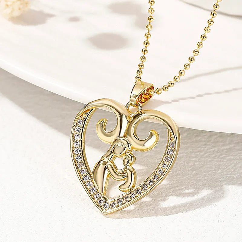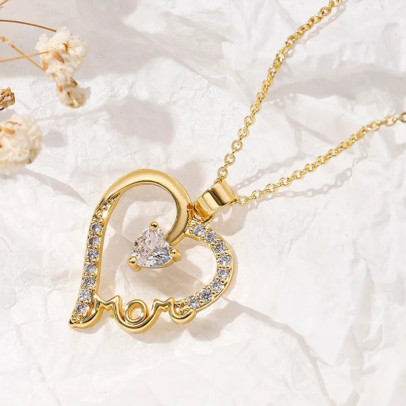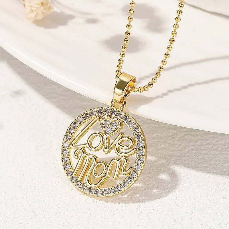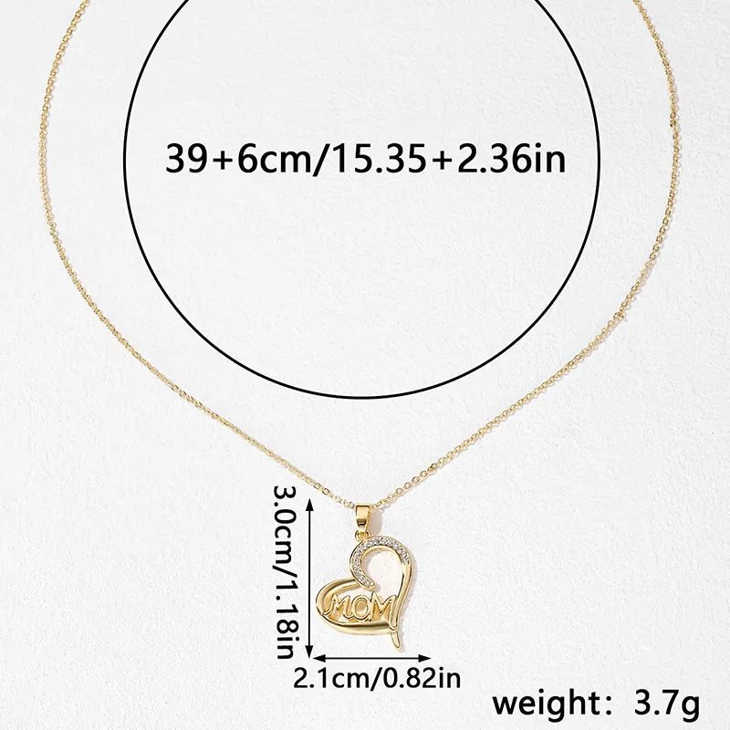 elegant romantic letter heart shape copper plating hollow out inlay zircon pendant necklace - Gold / Mom Love 1