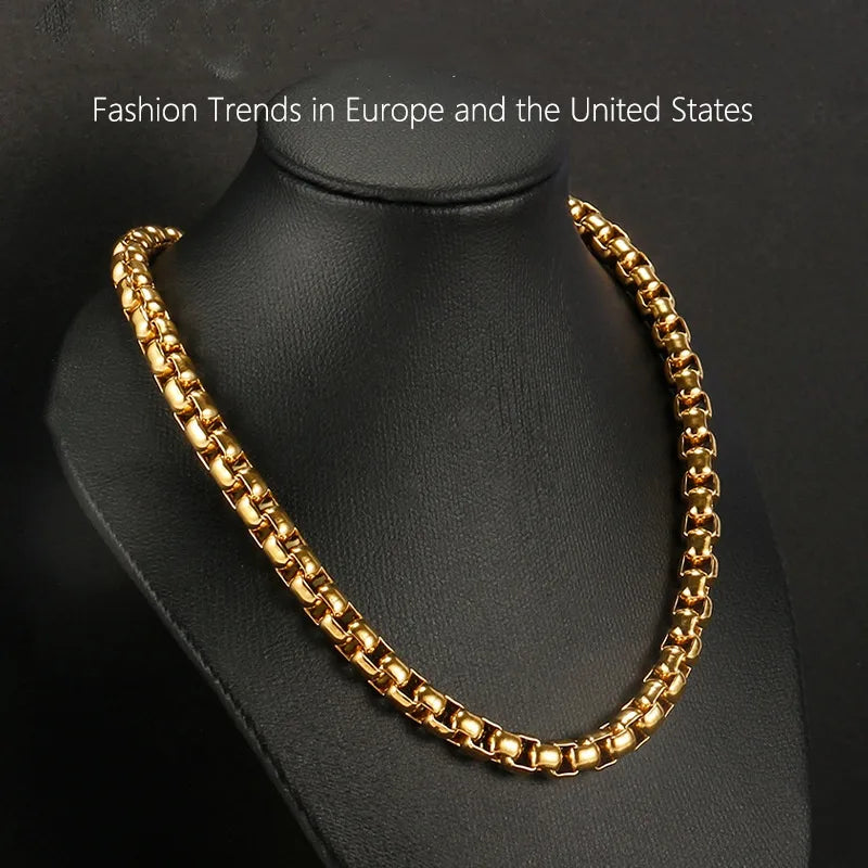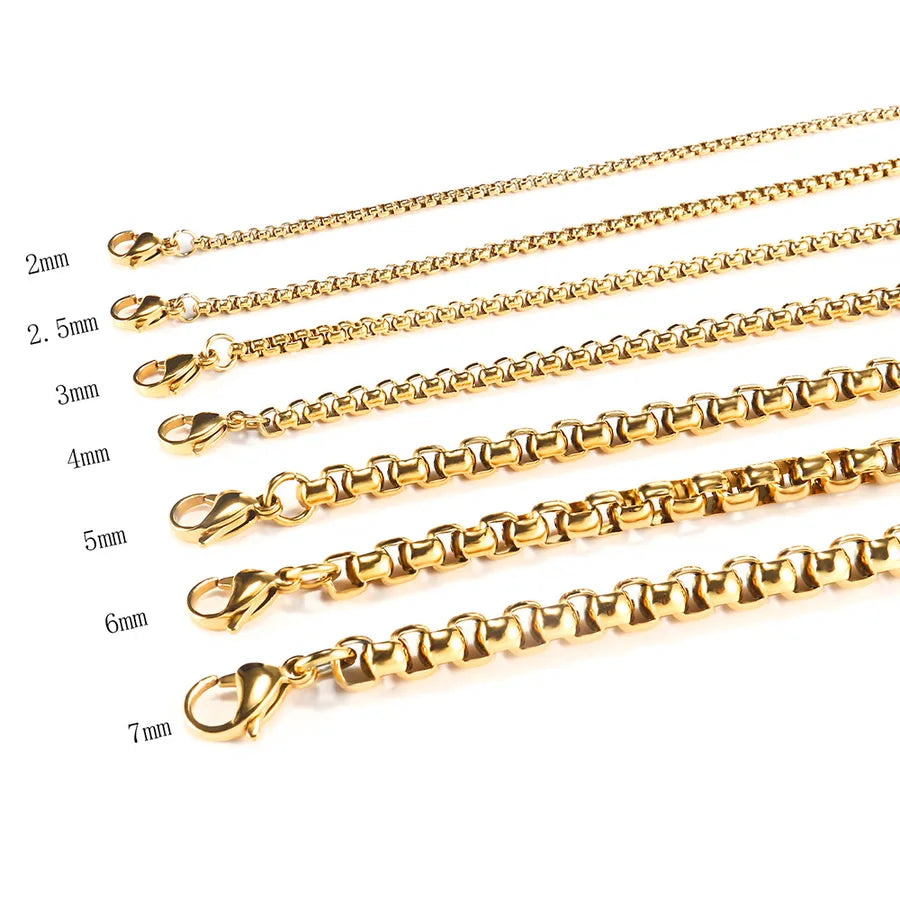 Europe and the United States for hip-hop stainless steel box chain male niche titanium steel square pearl necklace jewelry wholesale - Gold 1.5mm * 50cm