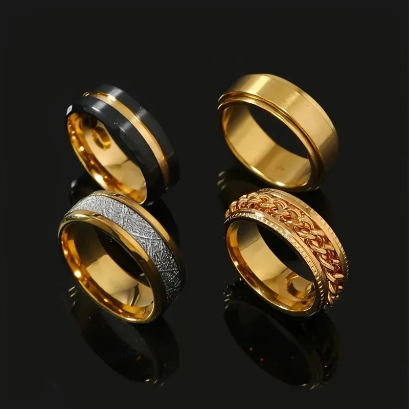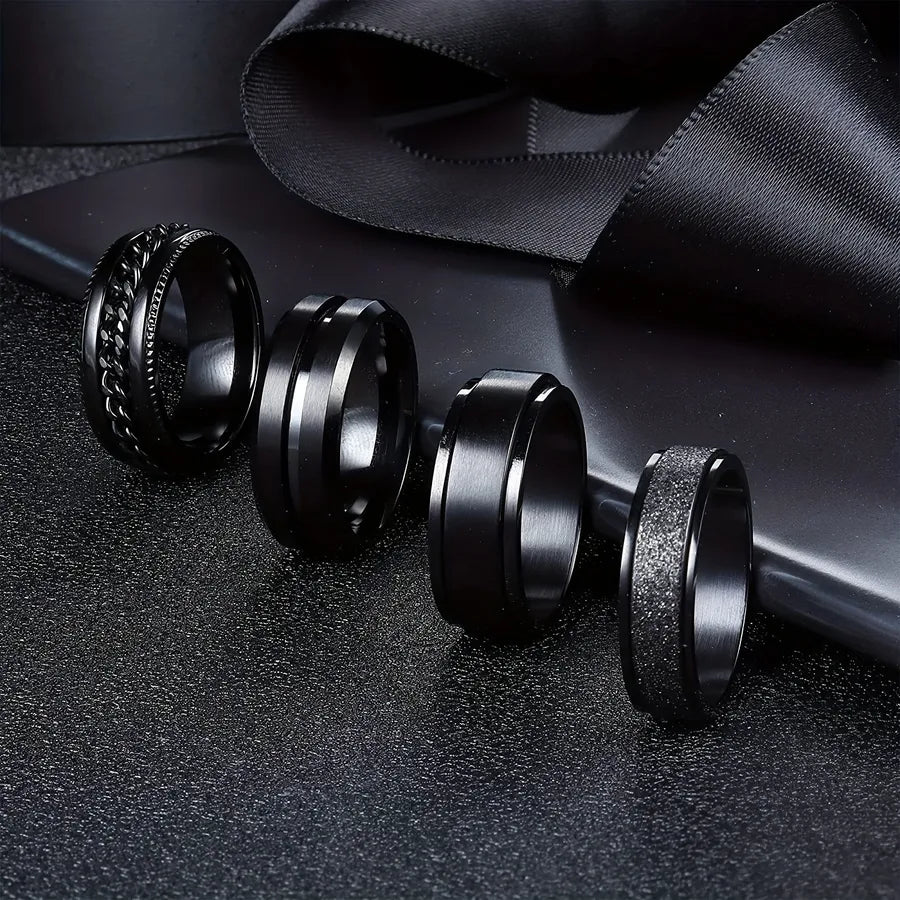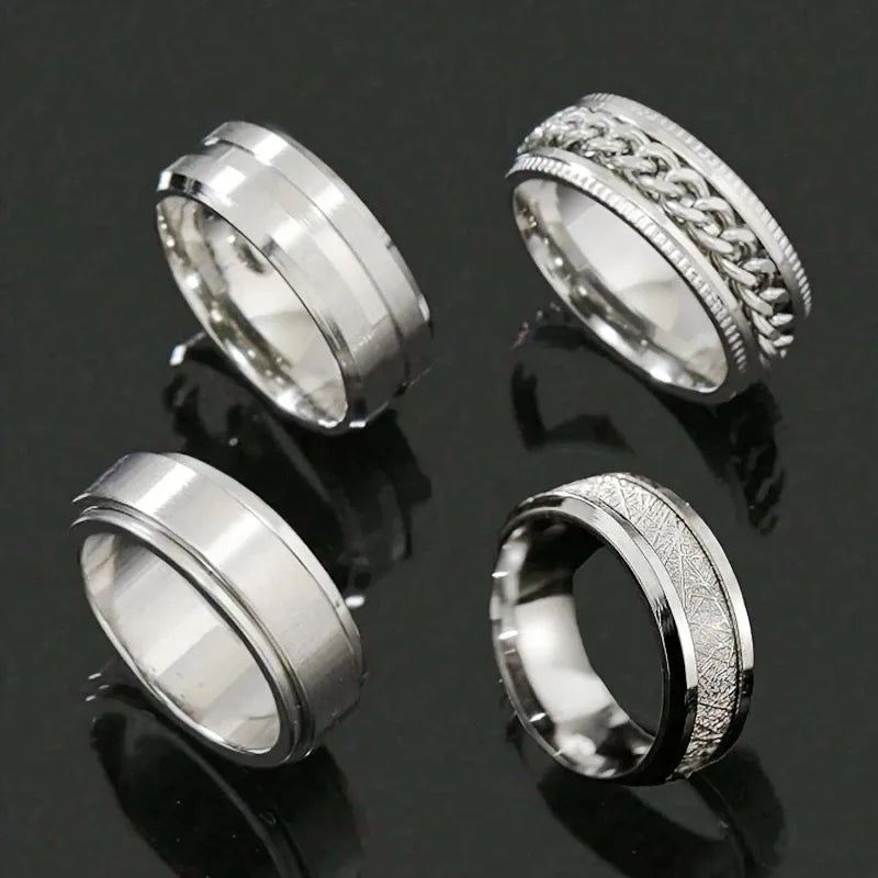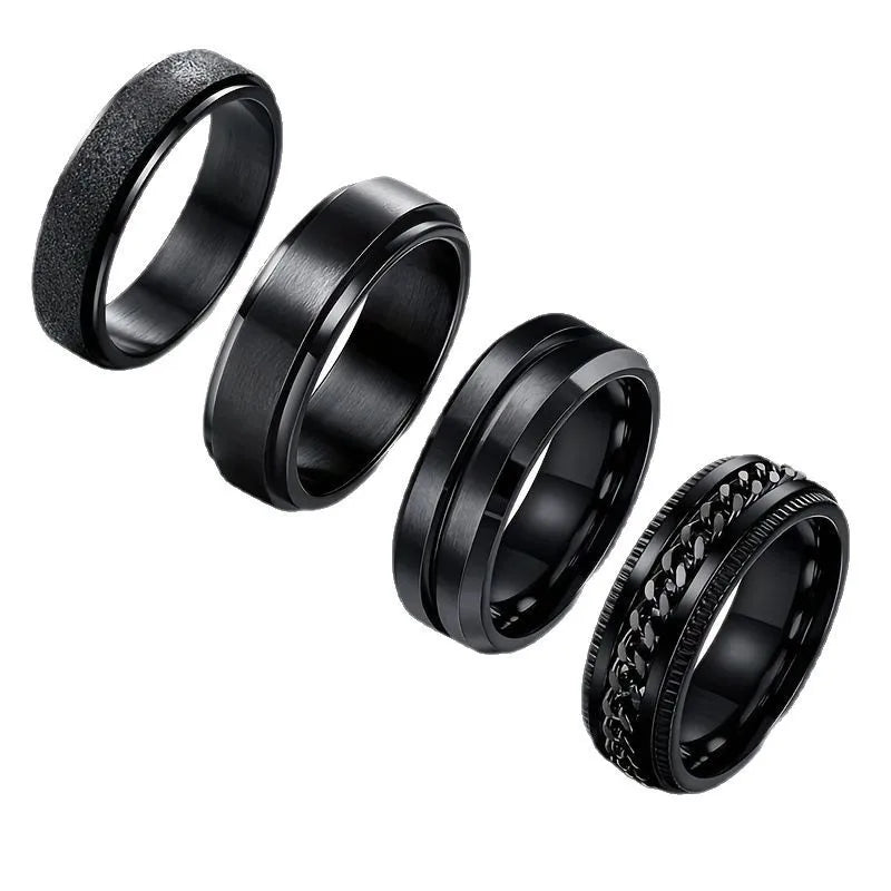 explosive ring suit rotatable frosted titanium steel ring men's fashion high-end stainless steel jewelry - No. 7 / Steel color four-piece set (rotatable model)