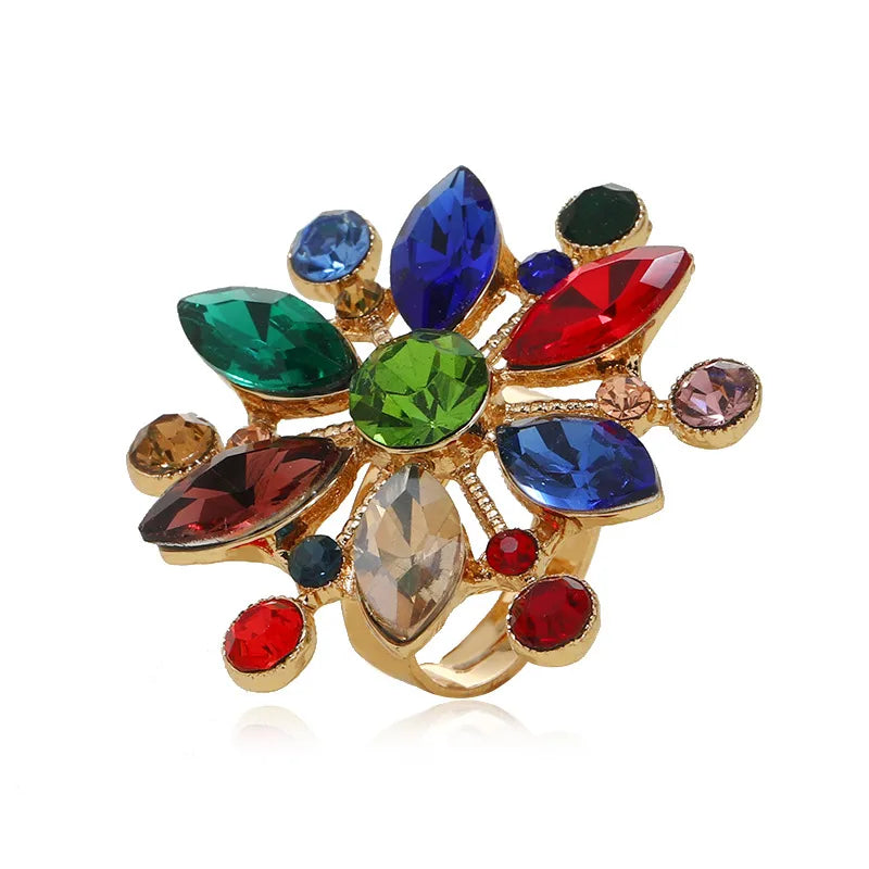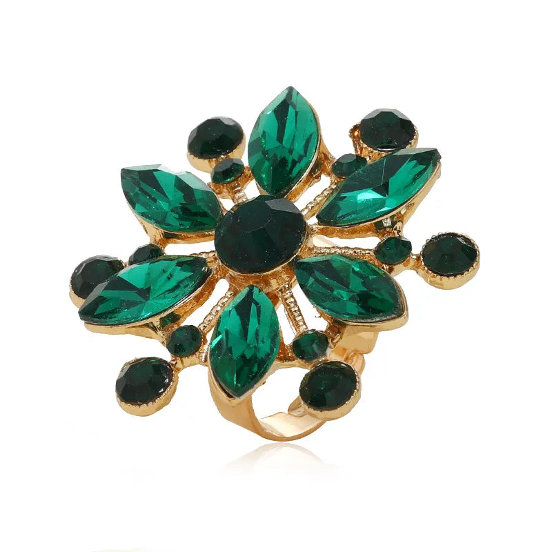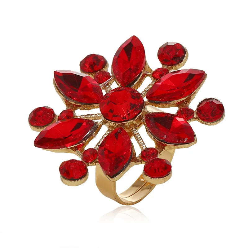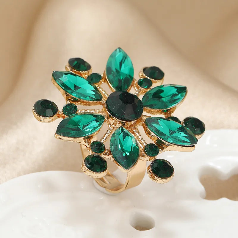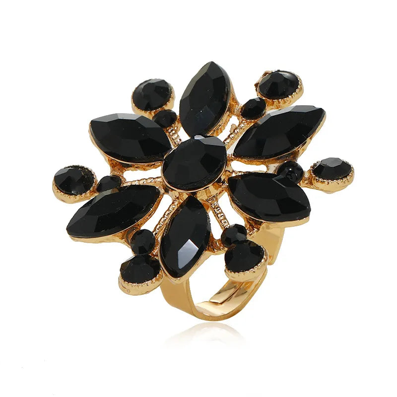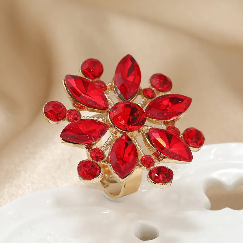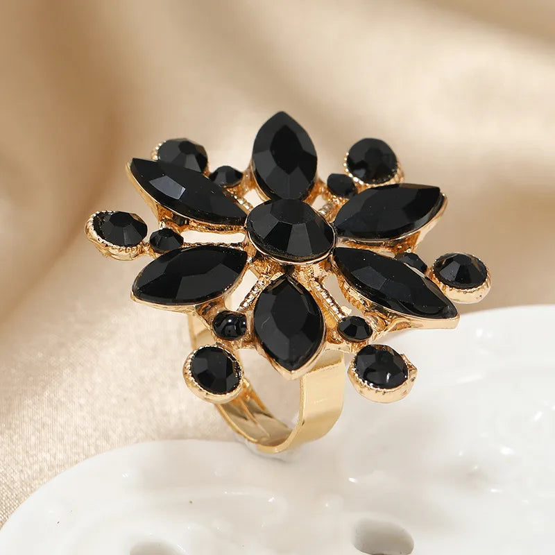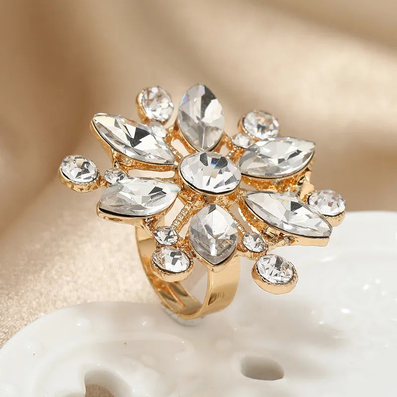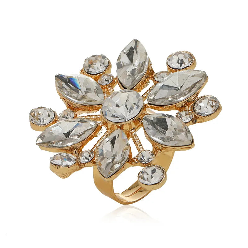 fashion exaggerated diamond flower open alloy ring wholesale - Adjustable Opening / White KC Gold