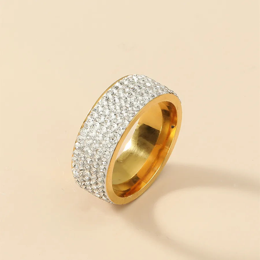 fashion titanium steel geometric full diamond ring wholesale nihaodropshipping - Golden 6#