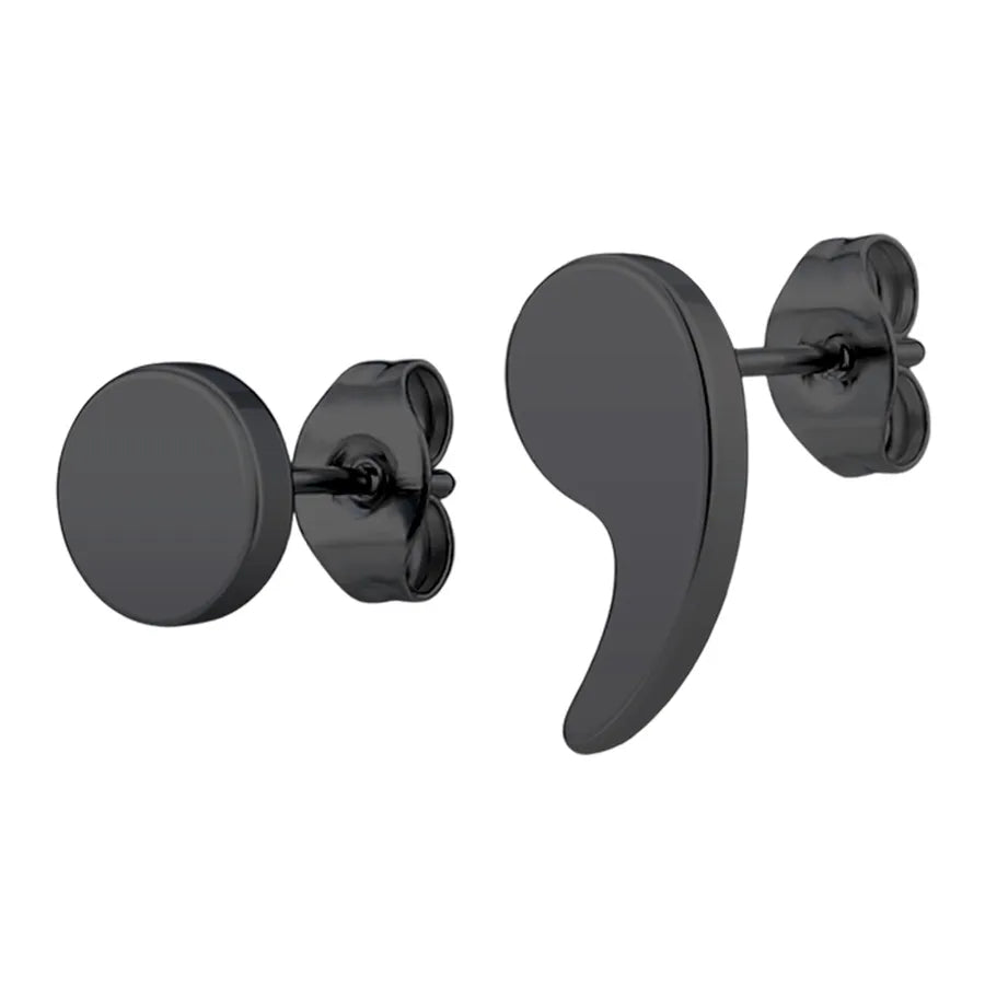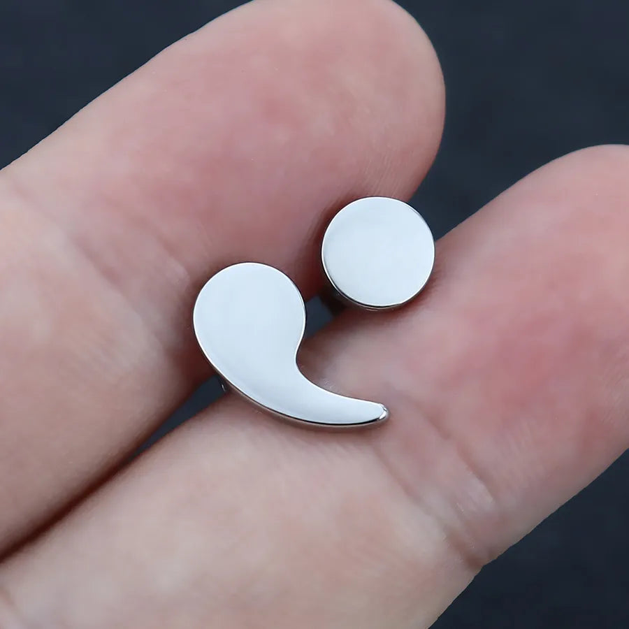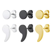 Fashionable Comma Shaped Titanium Steel Ear Studs Electroplated Round Butterfly Buckle Simple Stainless Steel Earrings For Unisex
