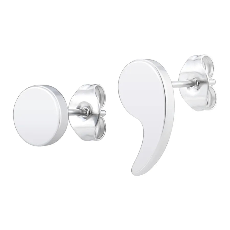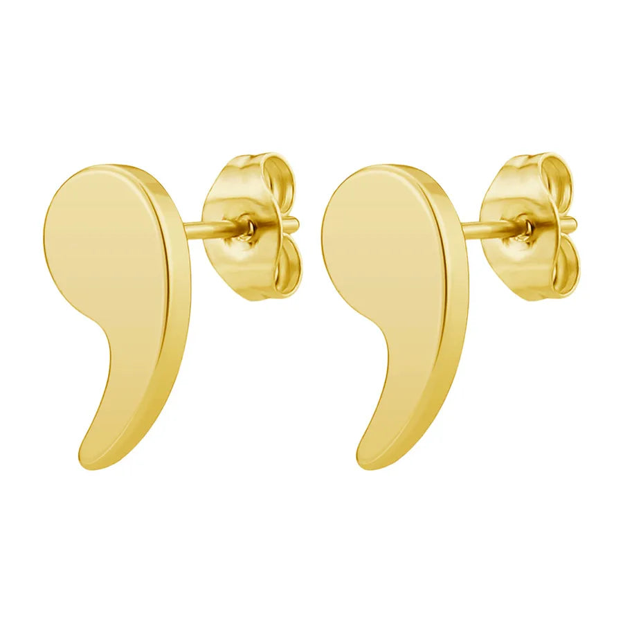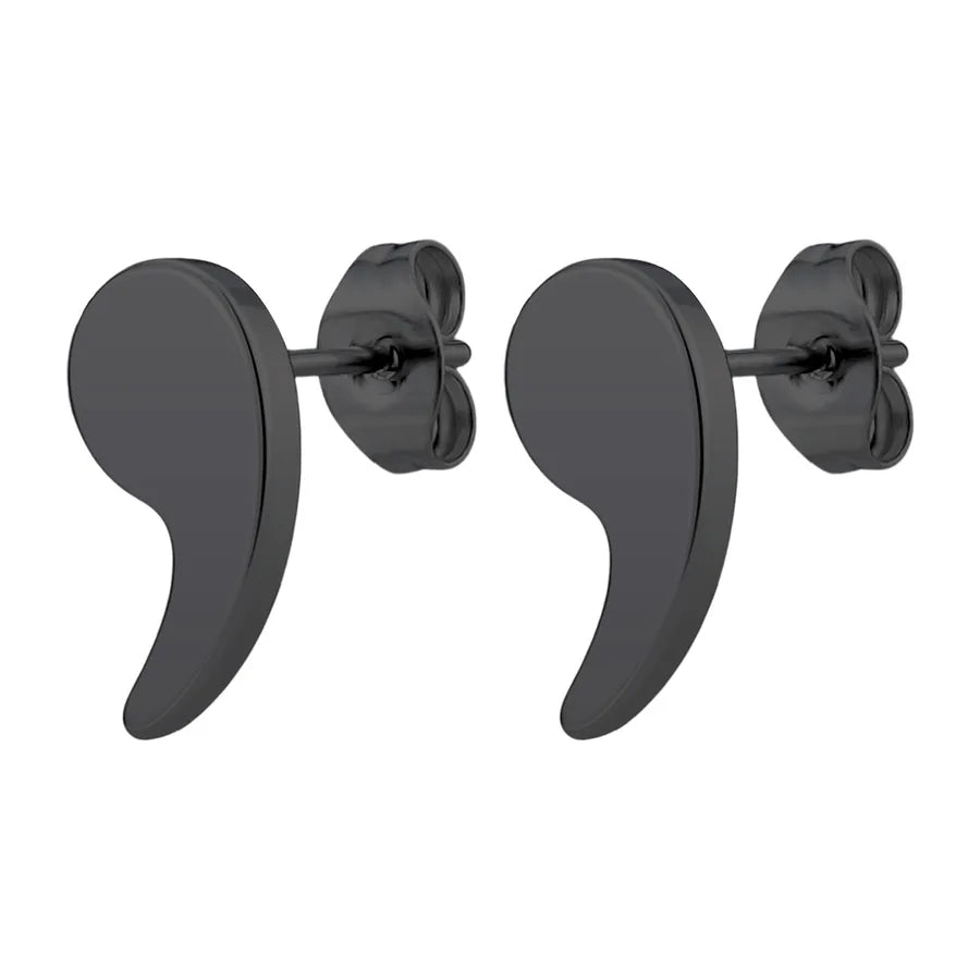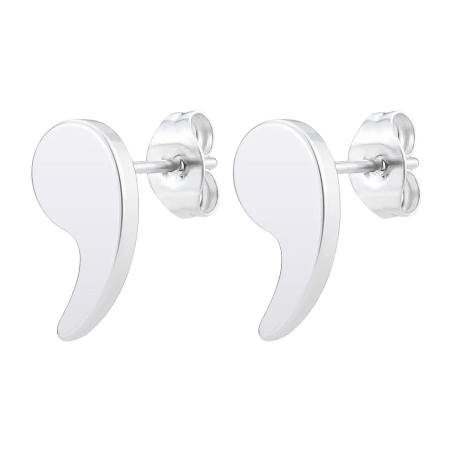 Fashionable Comma Shaped Titanium Steel Ear Studs Electroplated Round Butterfly Buckle Simple Stainless Steel Earrings For Unisex - Comma Steel Color (1 Pair)
