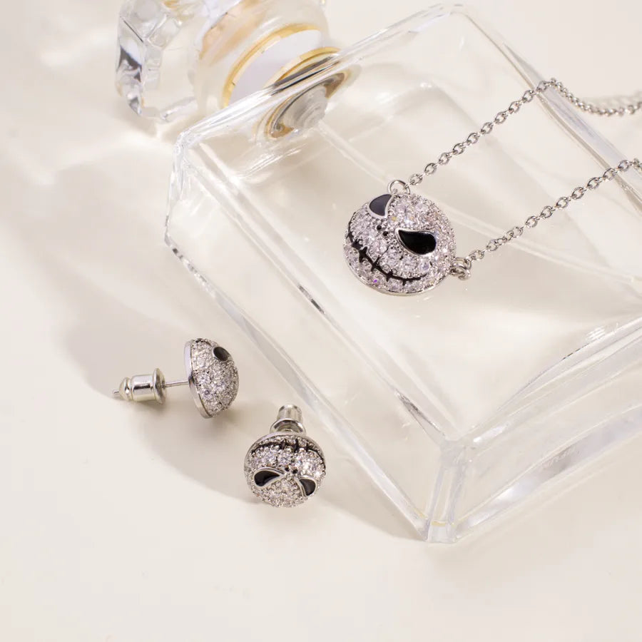 Gothic Style Pumpkin Skull Diamond Embedded Copper Necklace Earring Jewelry Set Halloween Decorations Unisex Autumn Winter