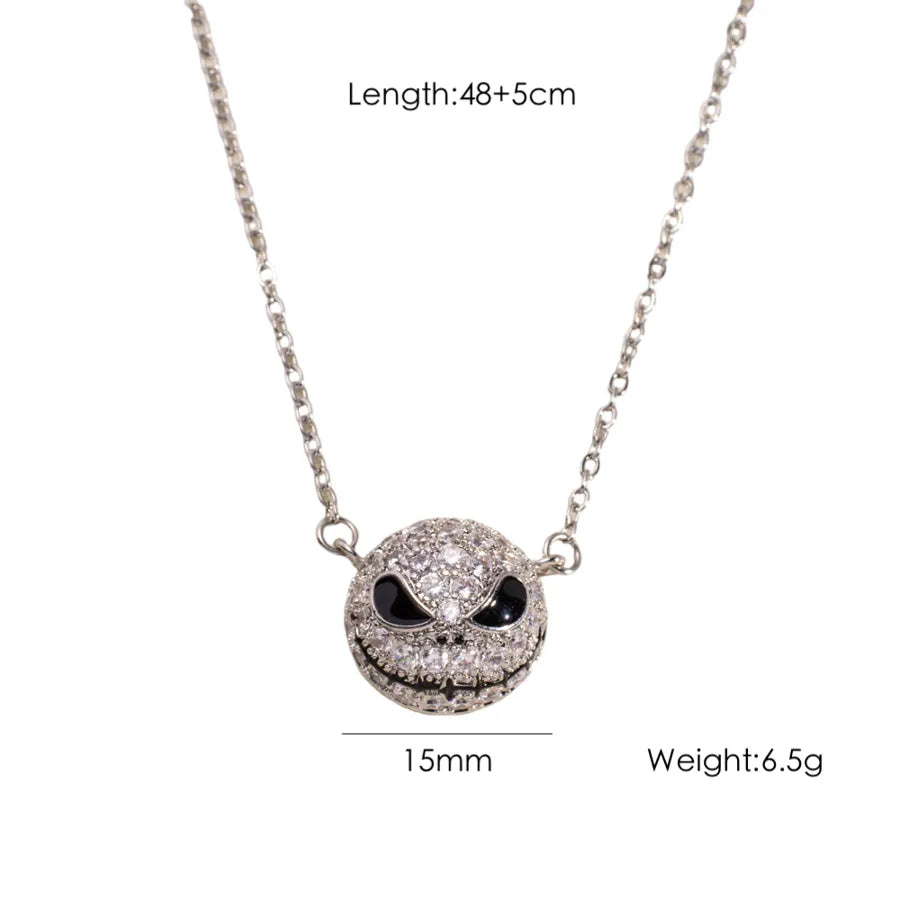Gothic Style Pumpkin Skull Diamond Embedded Copper Necklace Earring Jewelry Set Halloween Decorations Unisex Autumn Winter - Necklace