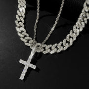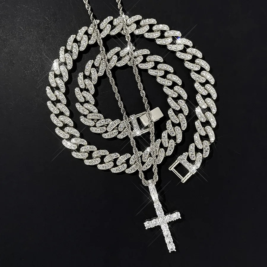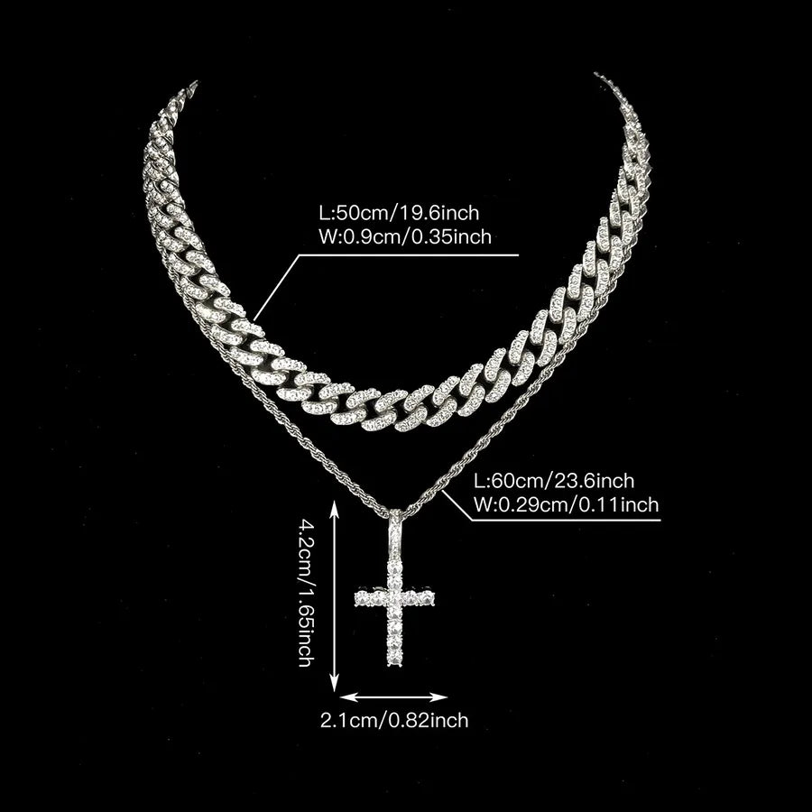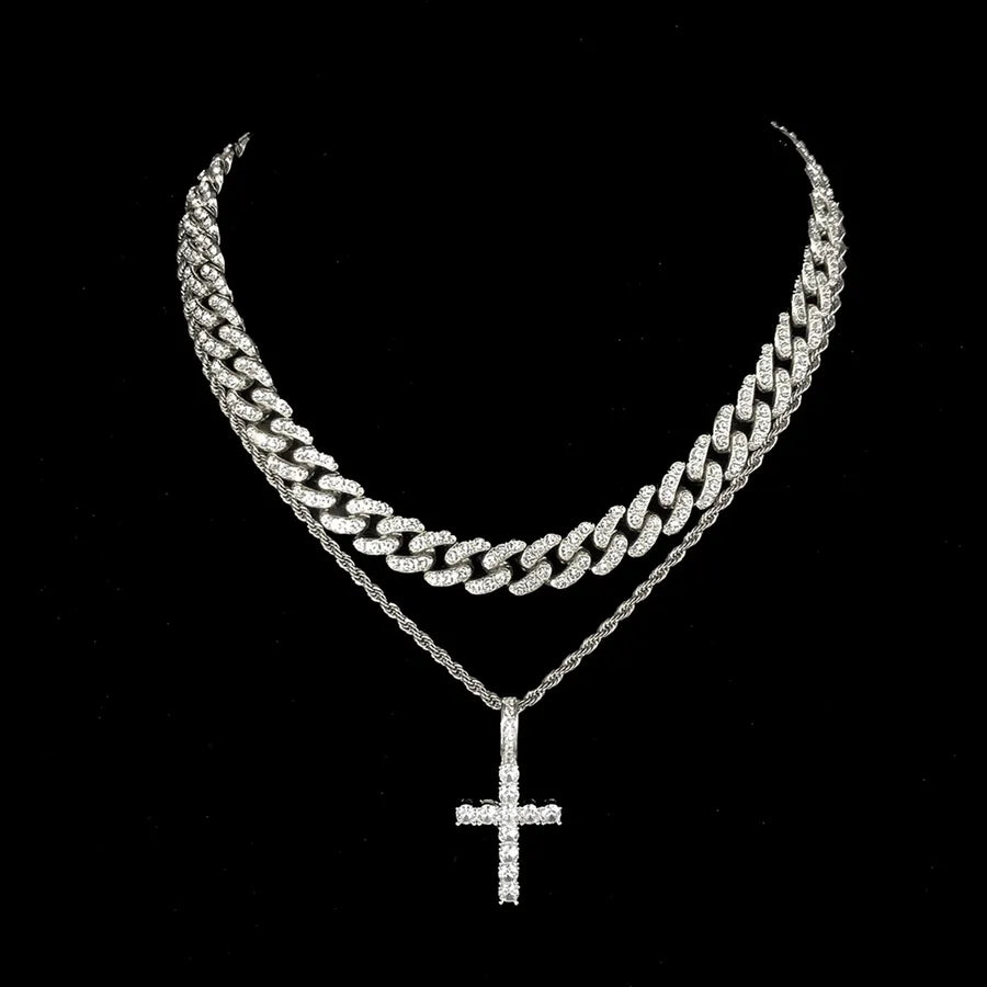 Hip-Hop Cross Zinc alloy Plating Inlay Rhinestones Unisex Pendant Necklace Necklace Men Layered Necklaces - Silver Cross Suit