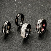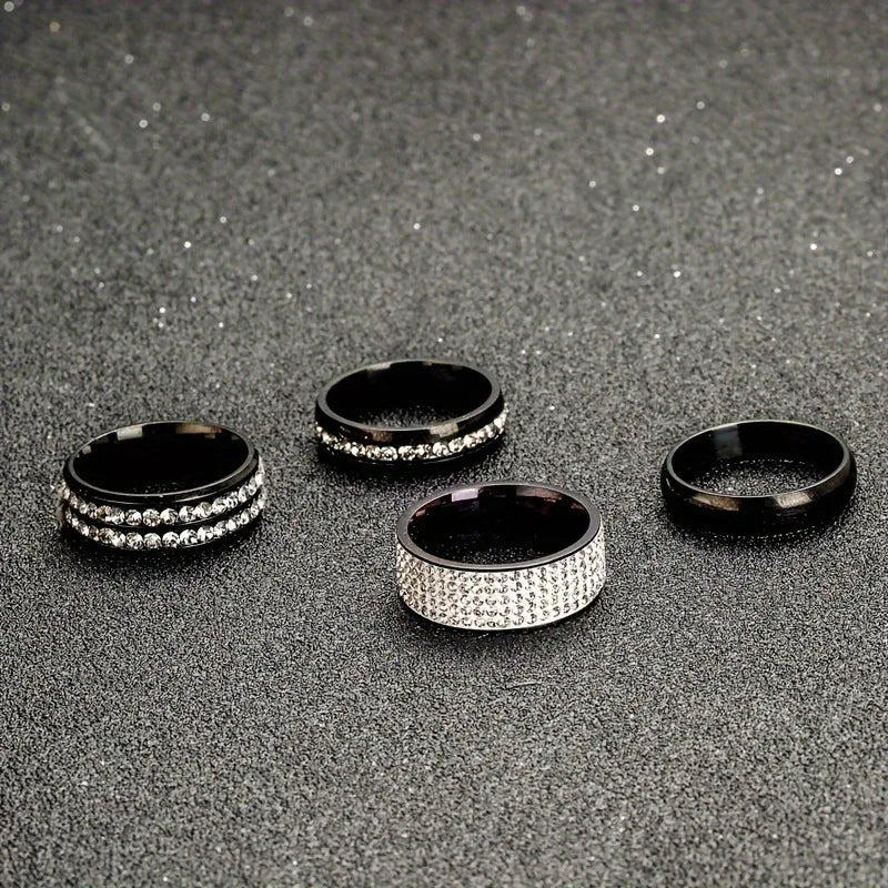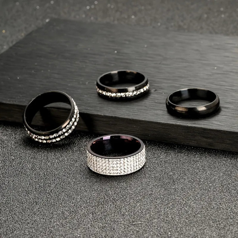 Hot Selling Titanium Steel Ring Clay Inlaid with Diamonds Men's Ring Fashionable and Versatile Stainless Steel Jewelry Manufacturer Direct Sales - No. 8 / Black four-piece suit