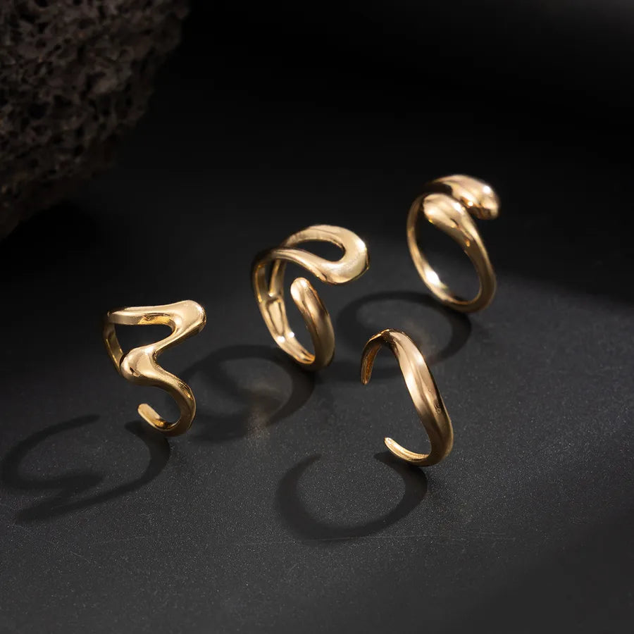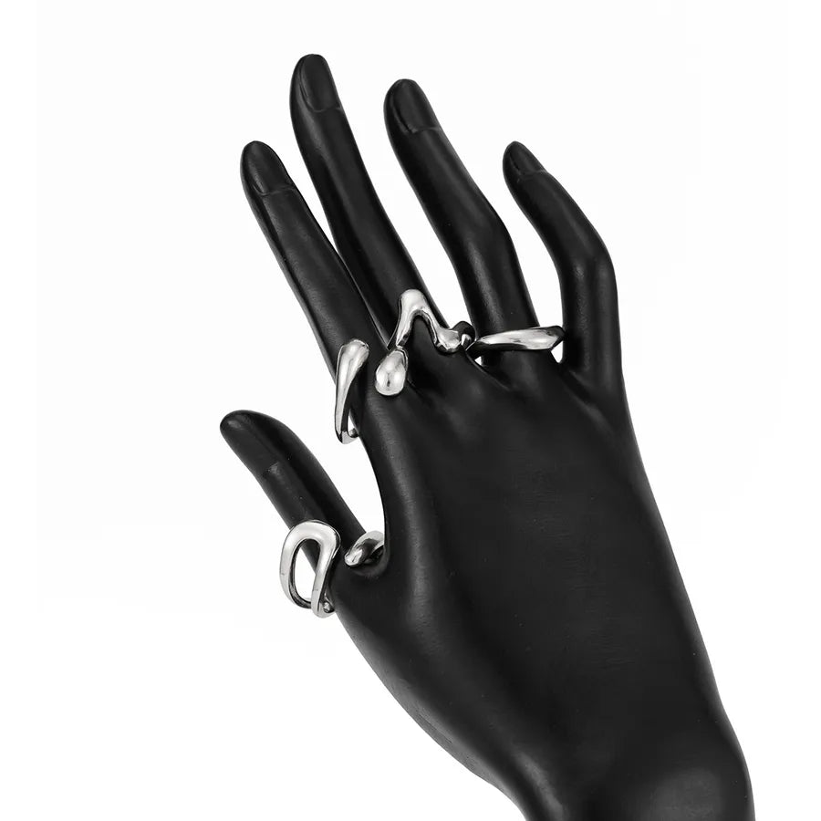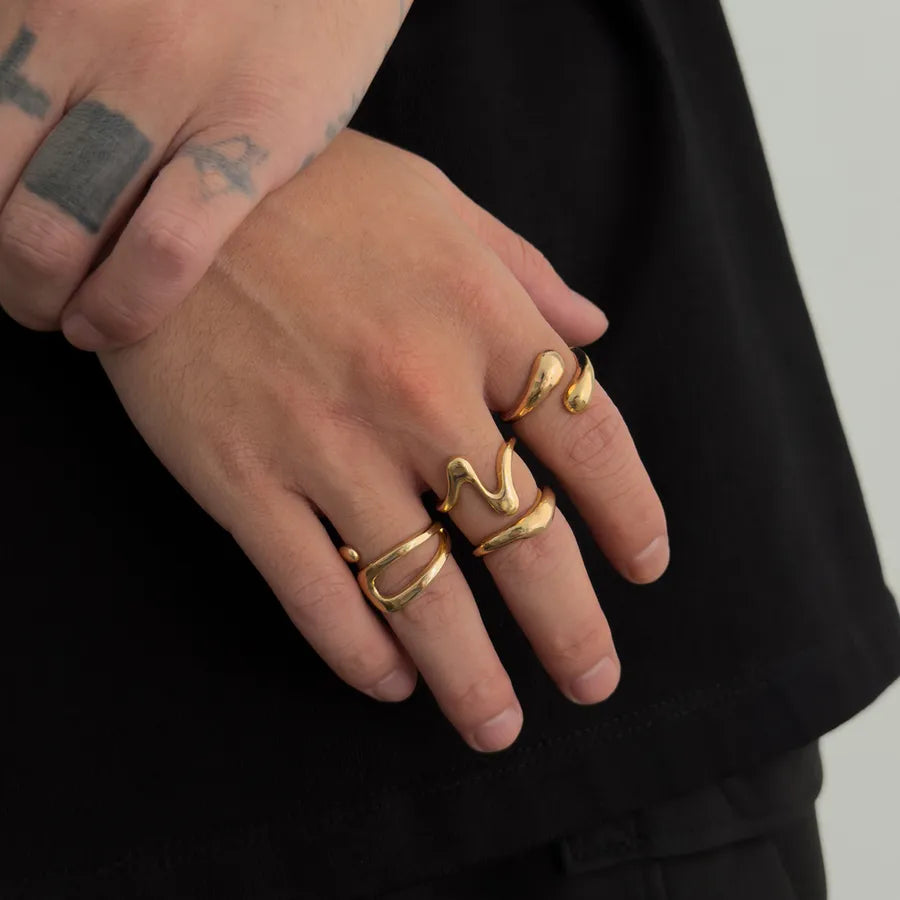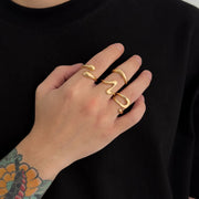 Men's 4-Piece Set Z-Shaped Double Layer Waterdrop Rings High-End Fashion Hand Accessories Jewelry - Light Gold-06458