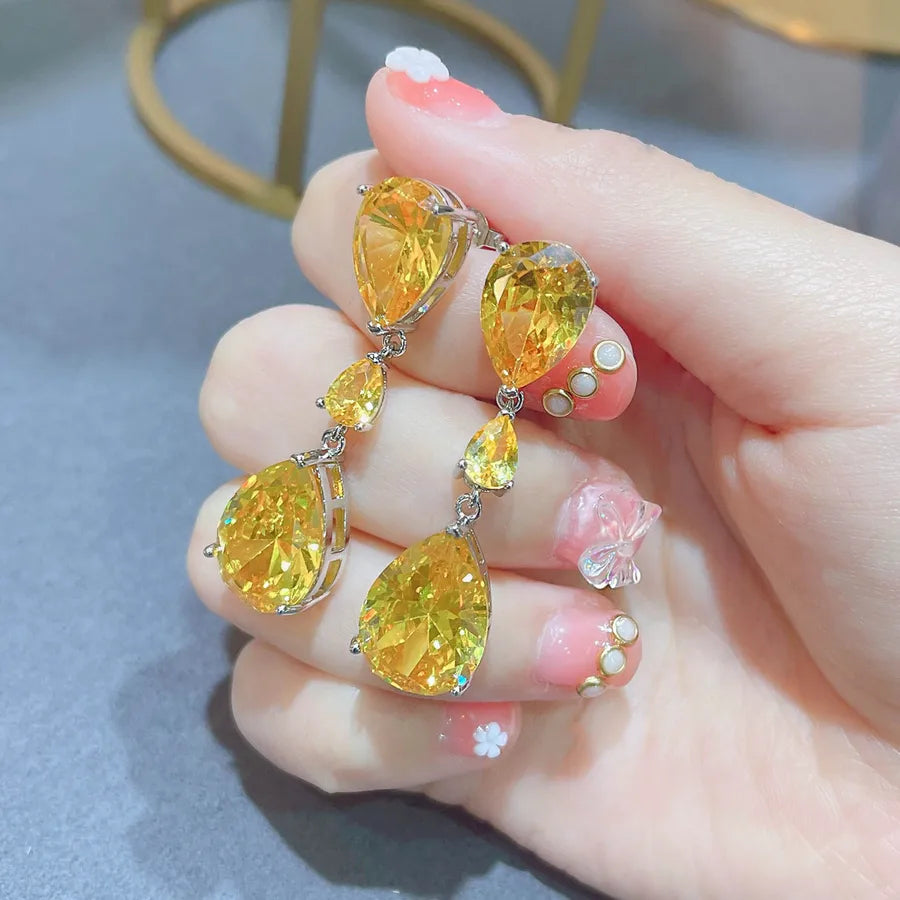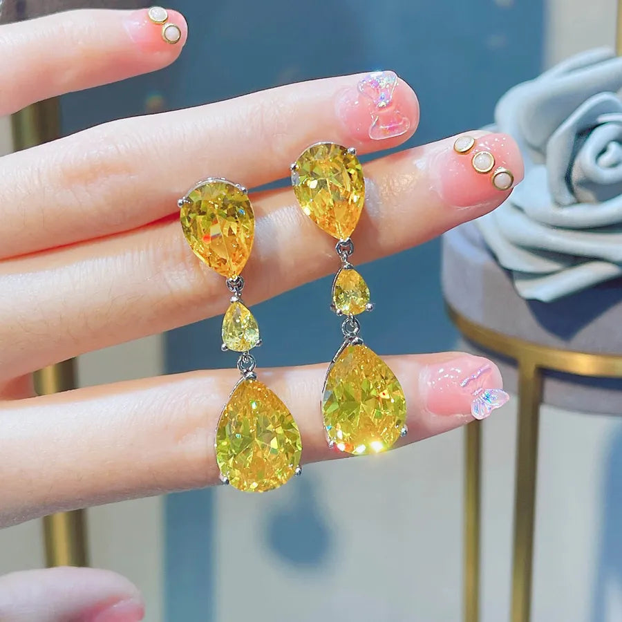 new moissan diamond drop earrings female fashion colorful diamond copper earrings - Pink Diamond Ear Studs [Price for One Pair]]