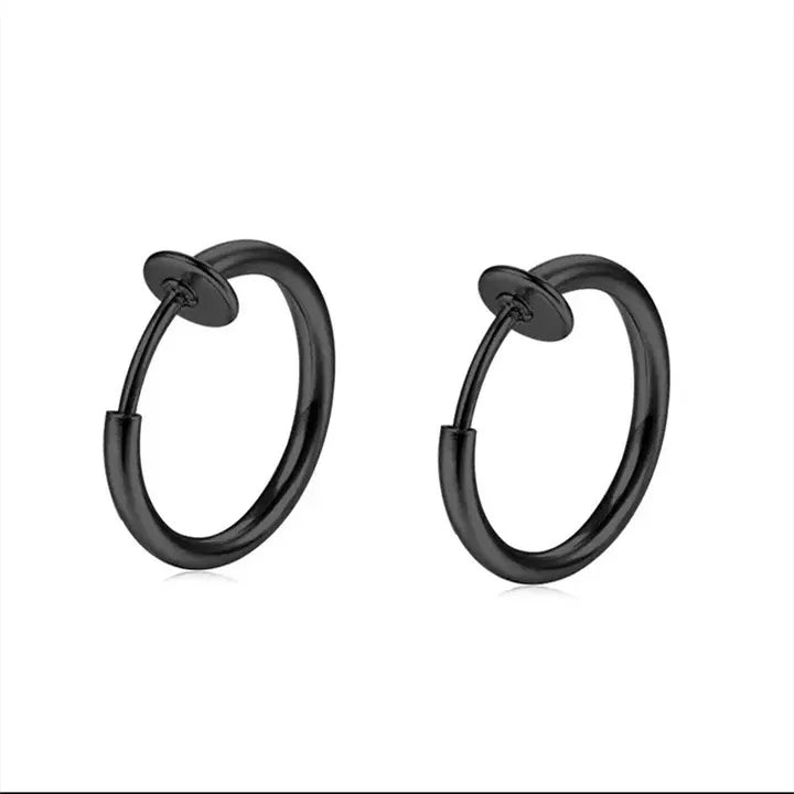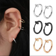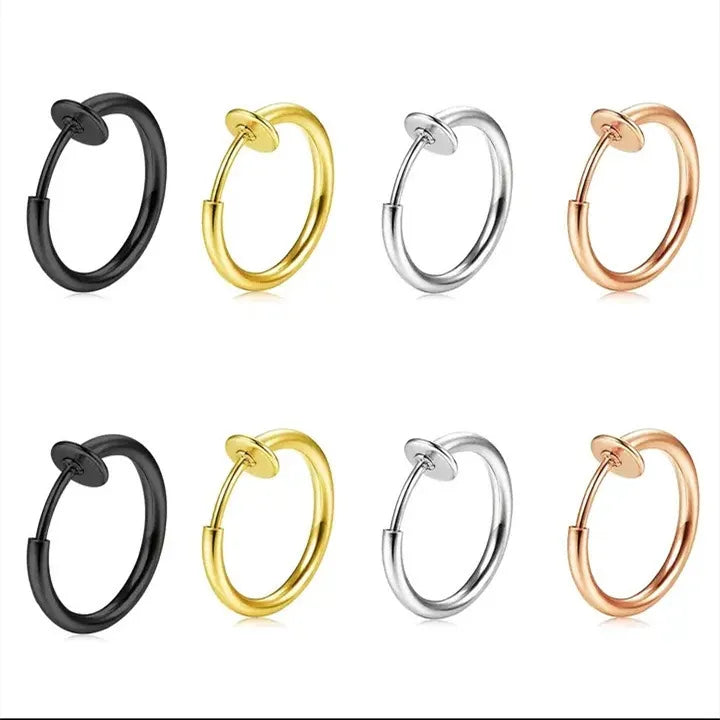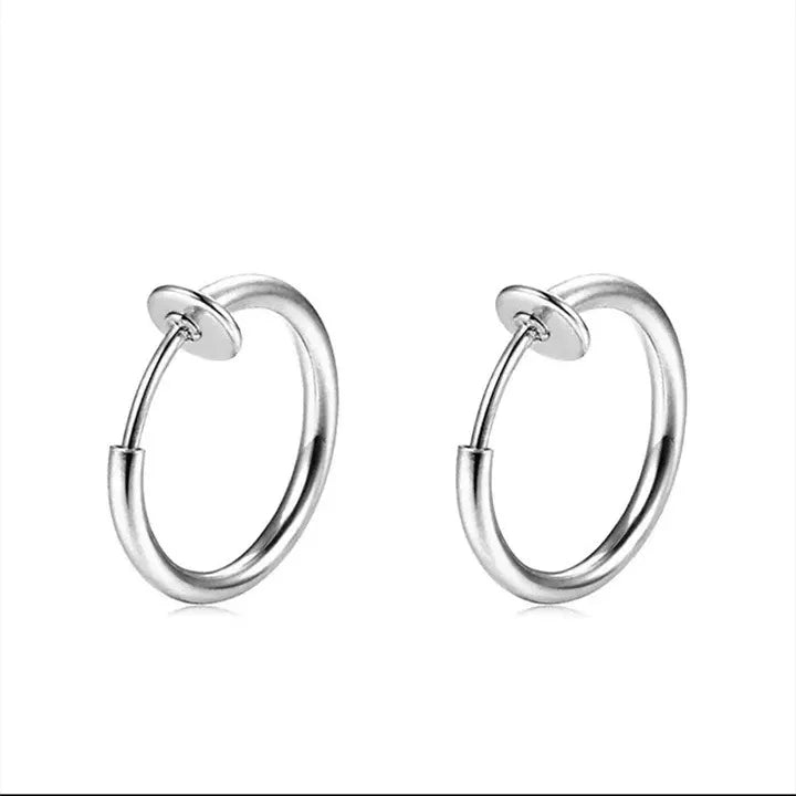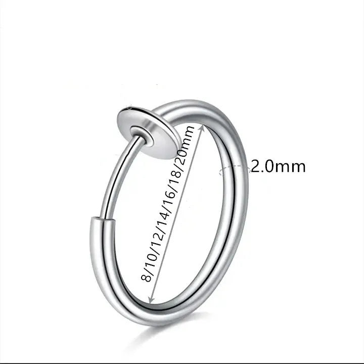 Punk style men's stainless steel Ear clip no hole titanium steel spring Ear clip no Ear hole Ear Cuff nose ring lip ring - Silver / Wire diameter 2.0*8