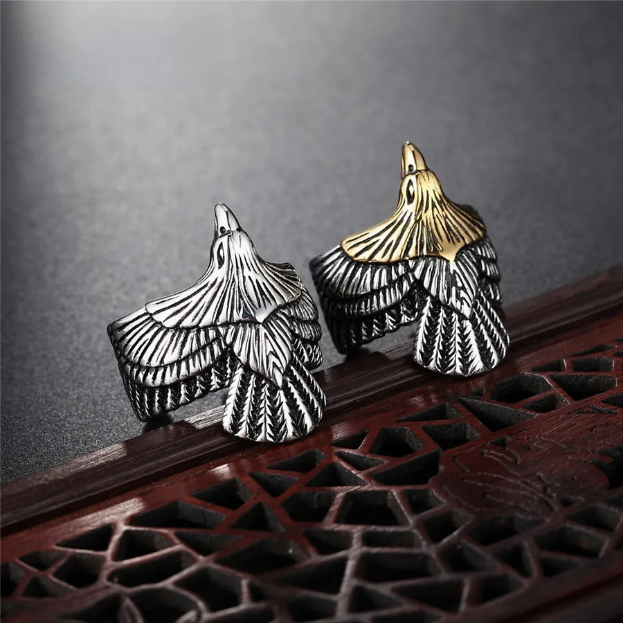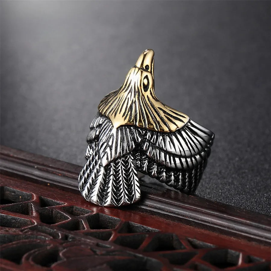 R0512-NK02 Stylish Retro Men's Titanium Steel Ring Golden Eagle Design Unique Personality Fashion Accessories - 7 / Inter-Gold