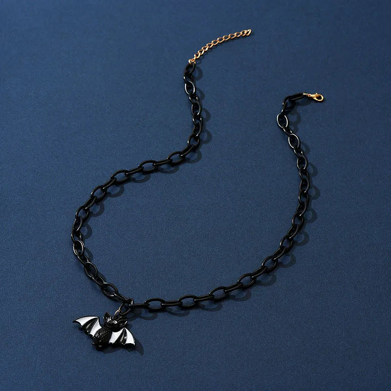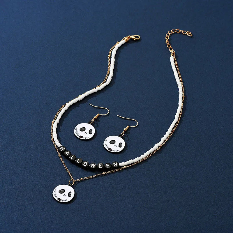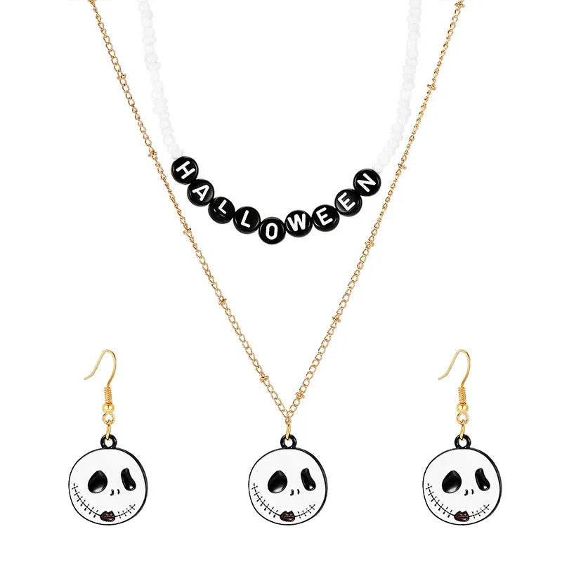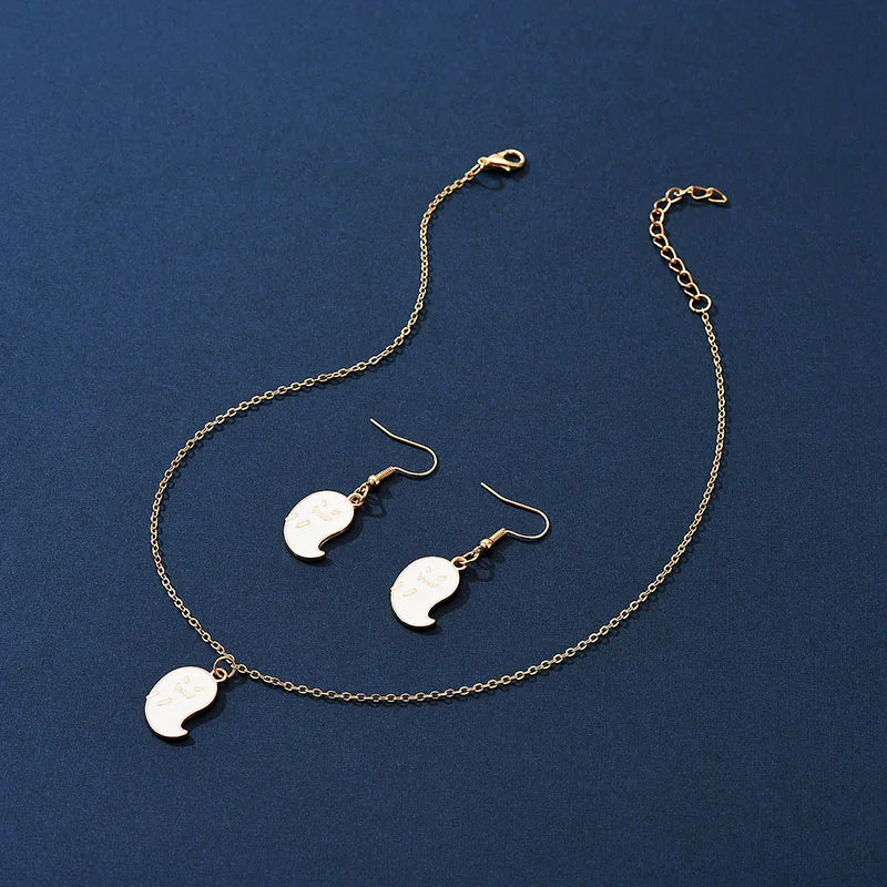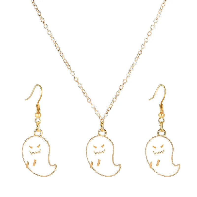 Retro Bat Ghost Grimace Alloy Patchwork Halloween Women'S Earrings Necklace - One Size / Multicolor