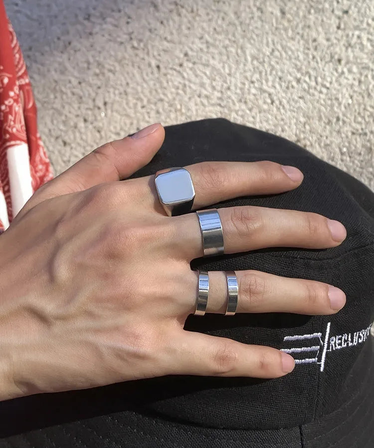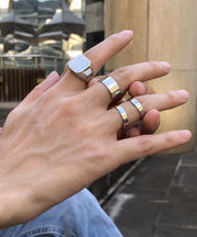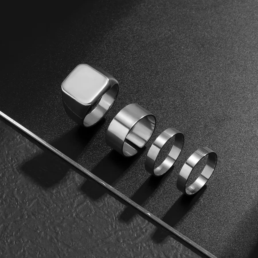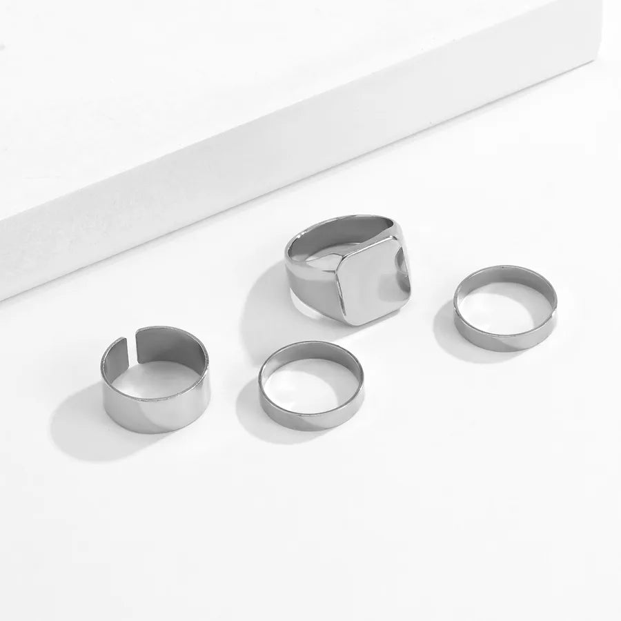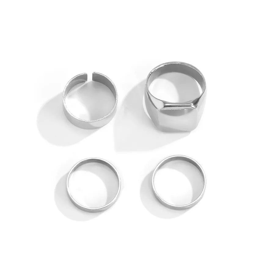 retro geometric alloy plating rings 4 pieces