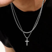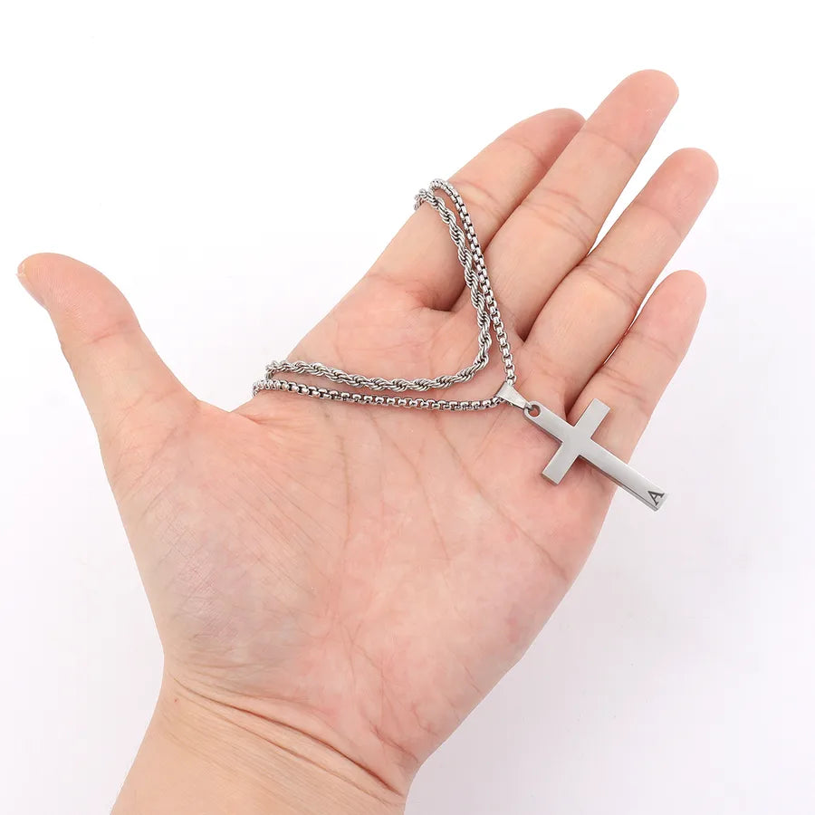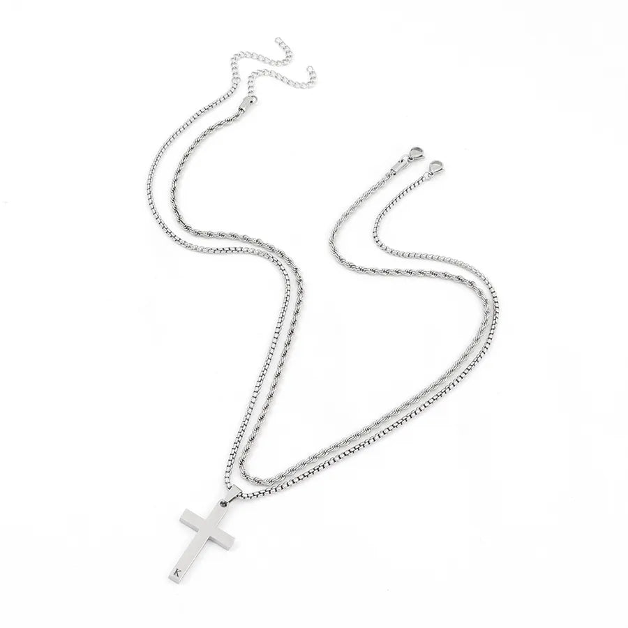 Retro Simple Style Classic Style Cross Letter 201 Stainless Steel 304 Stainless Steel Men's Pendant Necklace - Silver / A