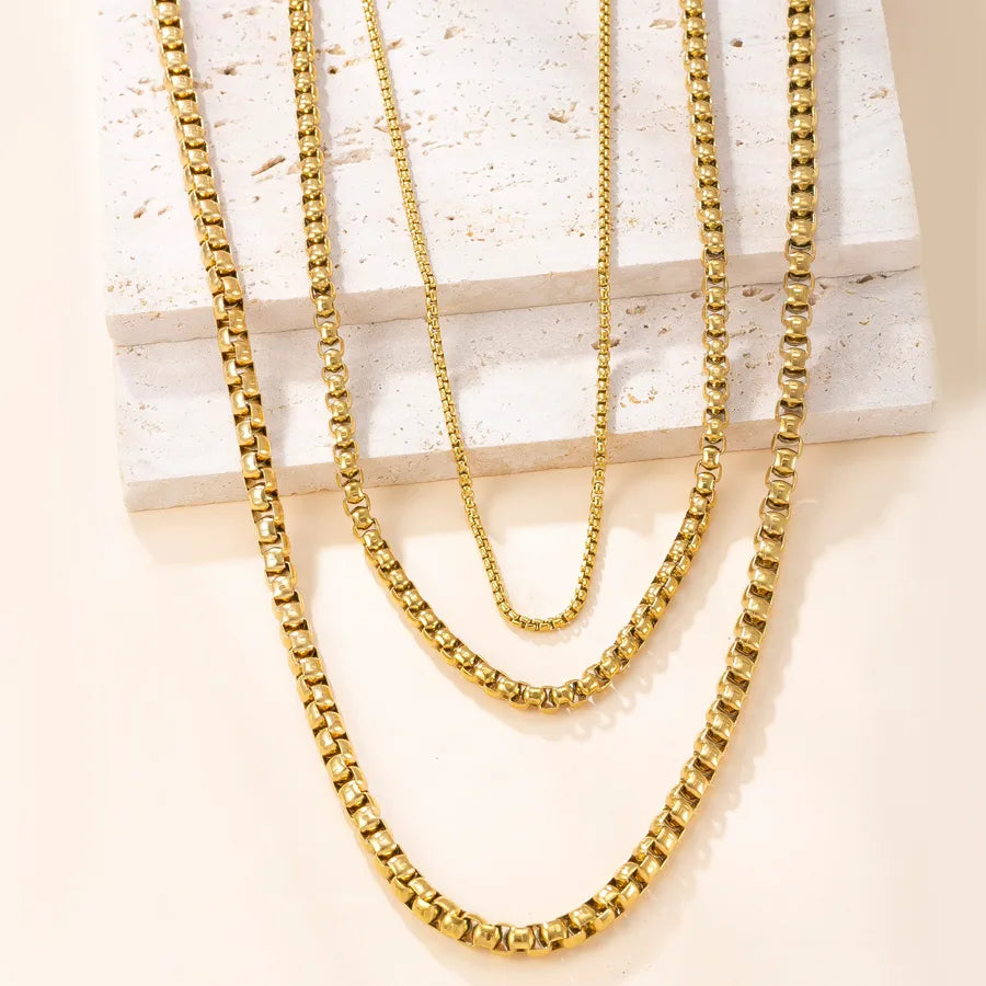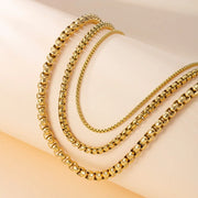 Stainless Steel Chain Pearl Chain/5/6/7mm Square Twin Necklace Choker 18K Gold Plated Titanium Steel Factory - 3mm Square Pearl Chain