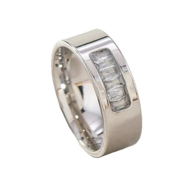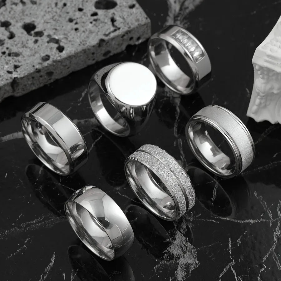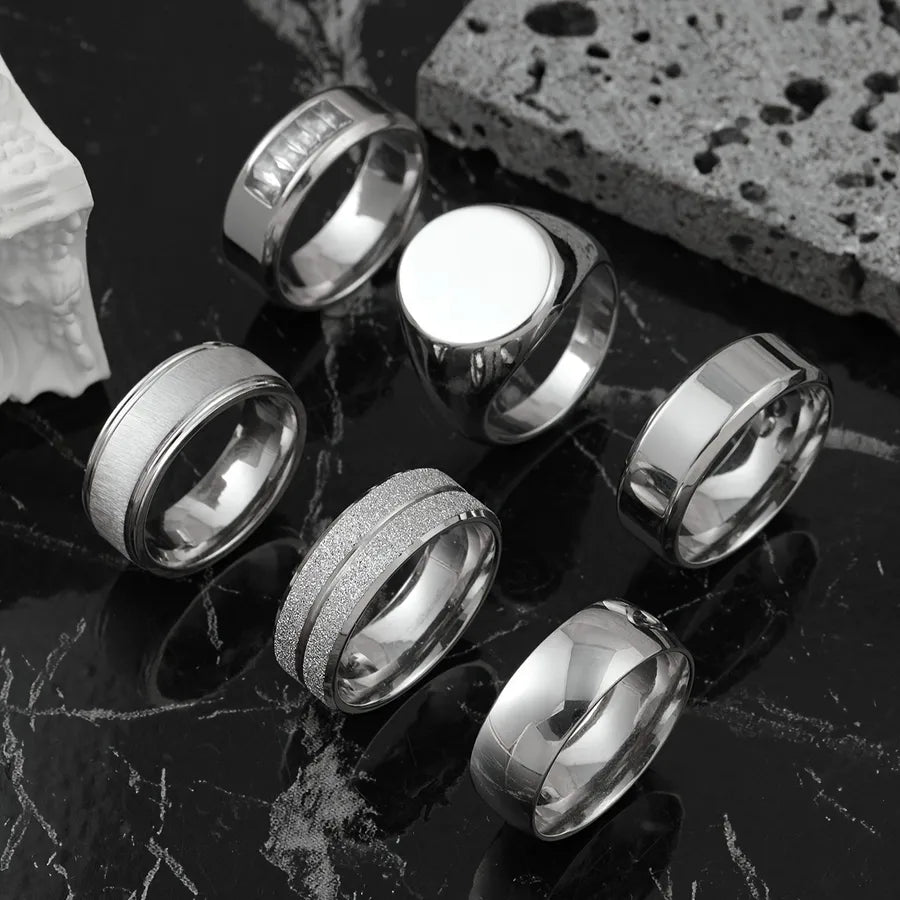 Stainless Steel Ornament Cast round Glossy Men's Ring Fashion Simple Titanium Steel Ring Suit - 7 / Steel Six-Piece Set