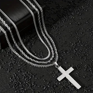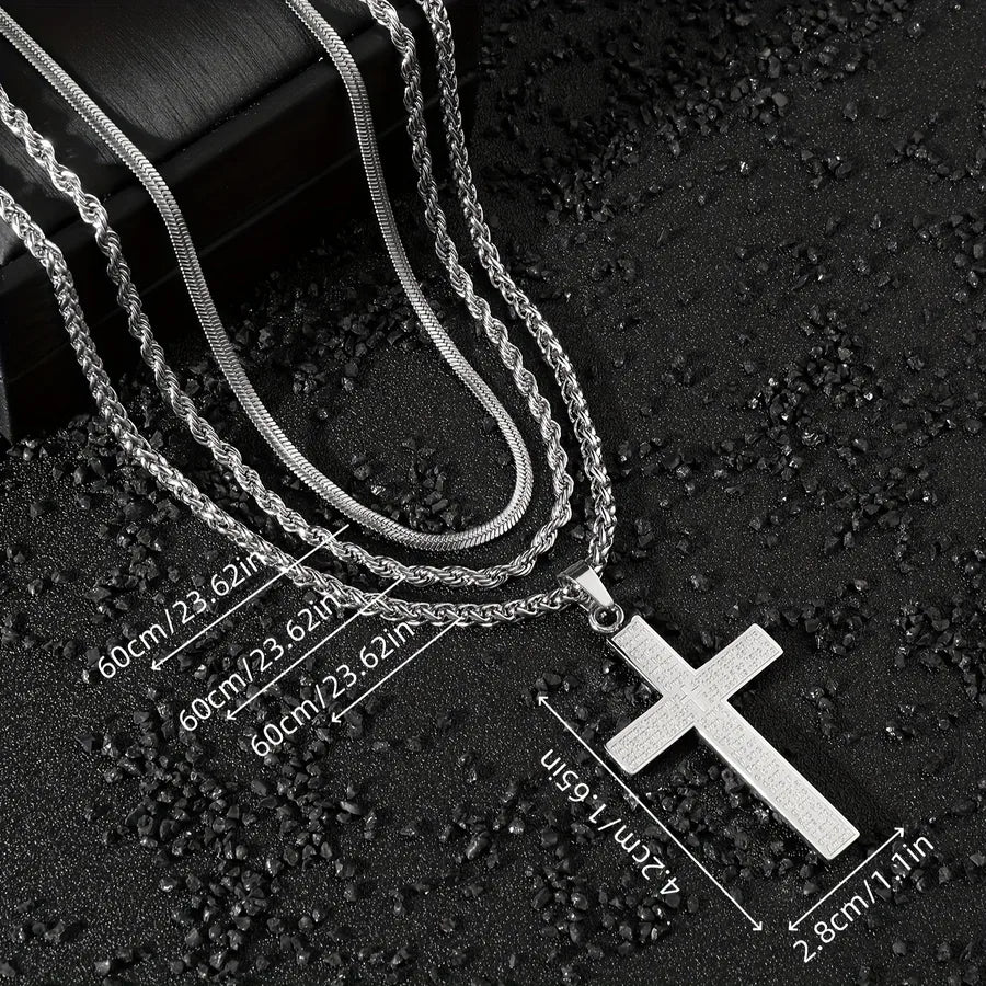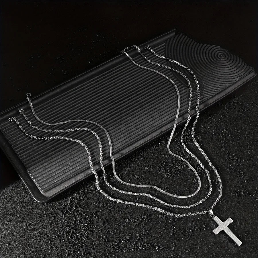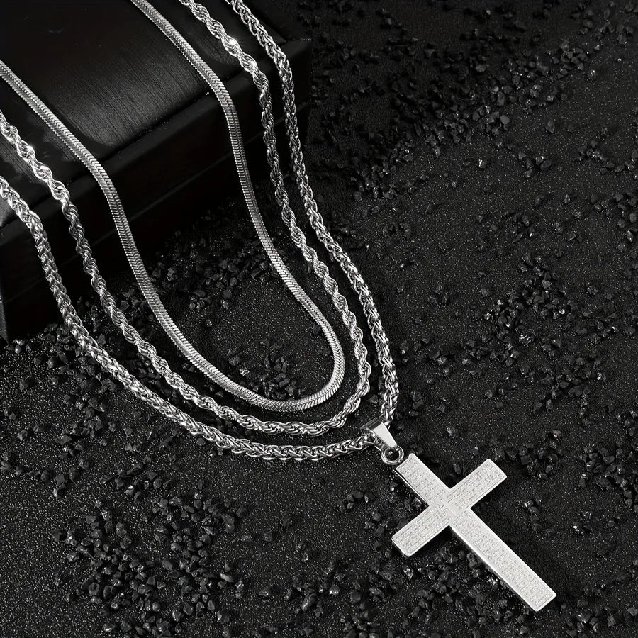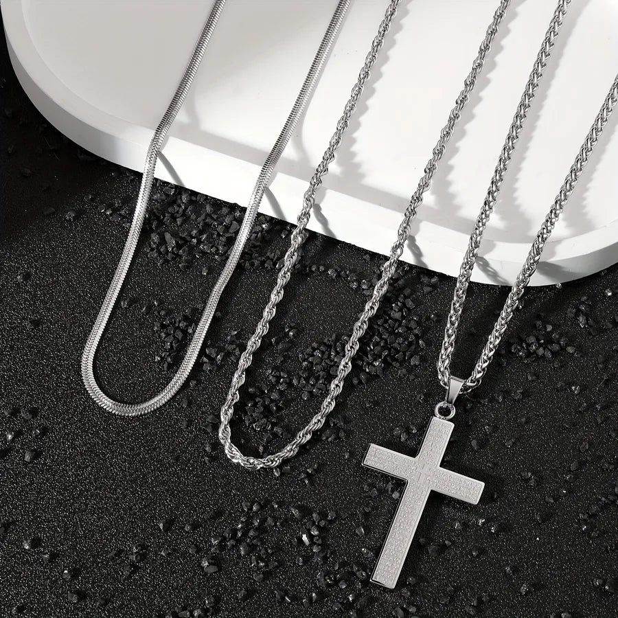 Trendy Titanium Steel Necklace Cross Pendant Hip Hop Punk Style Non-Fading Snake Bone Chain Three Piece Set Unisex Jewelry - Steel Three-Piece Set