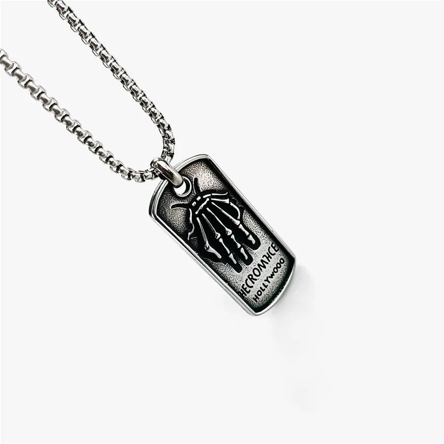 Trendy Vintage Stainless Steel Pendant Men's Dominant Hand Bone Necklace Halloween Gift Cartoon Character Design Jewelry Accessory - Single Pendant, Not Necklace