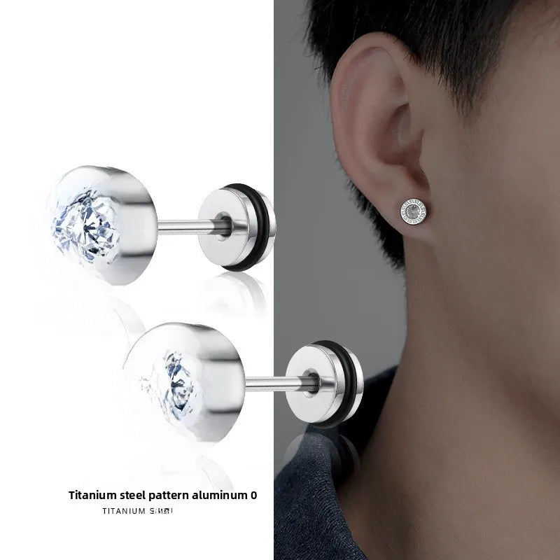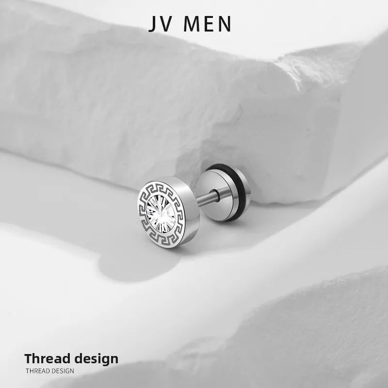 Trendy Zircon Titanium Steel Ear Cuff Men's Single Ear Stud Simple Stylish Versatile Ear Jewelry New Arrival Hip Hop Style - Great Wall Pattern Spiral Earrings