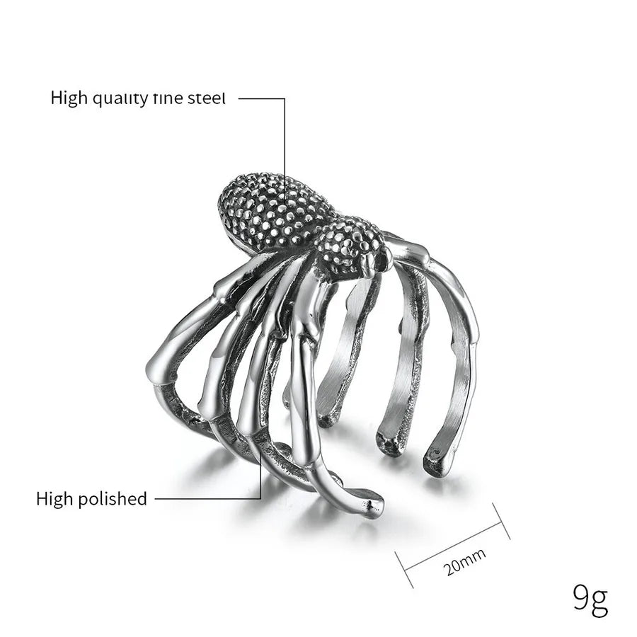 Wholesale Jewelry Hip-Hop Retro Spider 304 Stainless Steel 18K Gold 18K Gold Plated Plating Rings - 8 / Silver